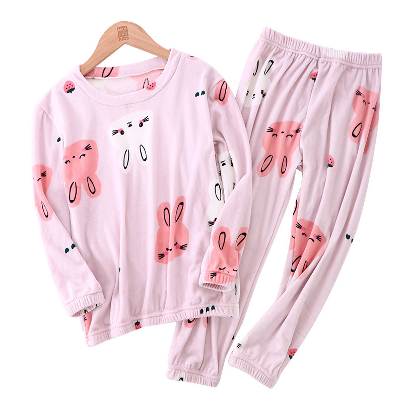어린이 플란넬 홈웨어 세트 가을과 겨울 뉴 걸스 크리스탈 벨벳 기모 두꺼운 잠옷 세트 부모-자식 스타일스토어 가기