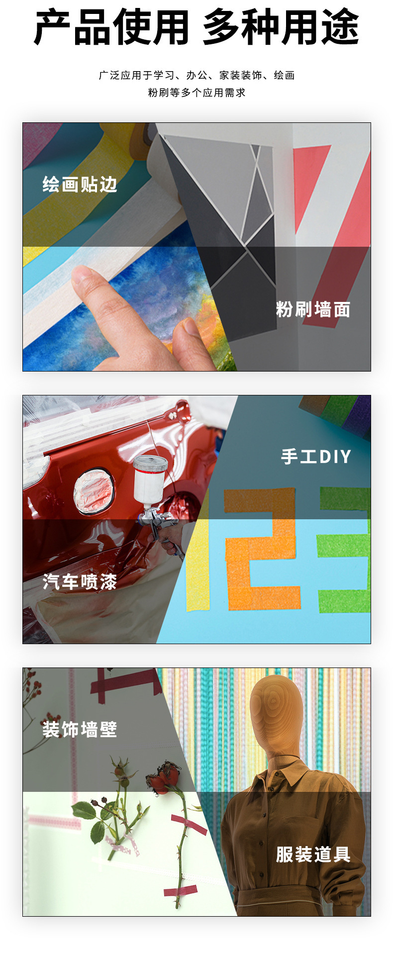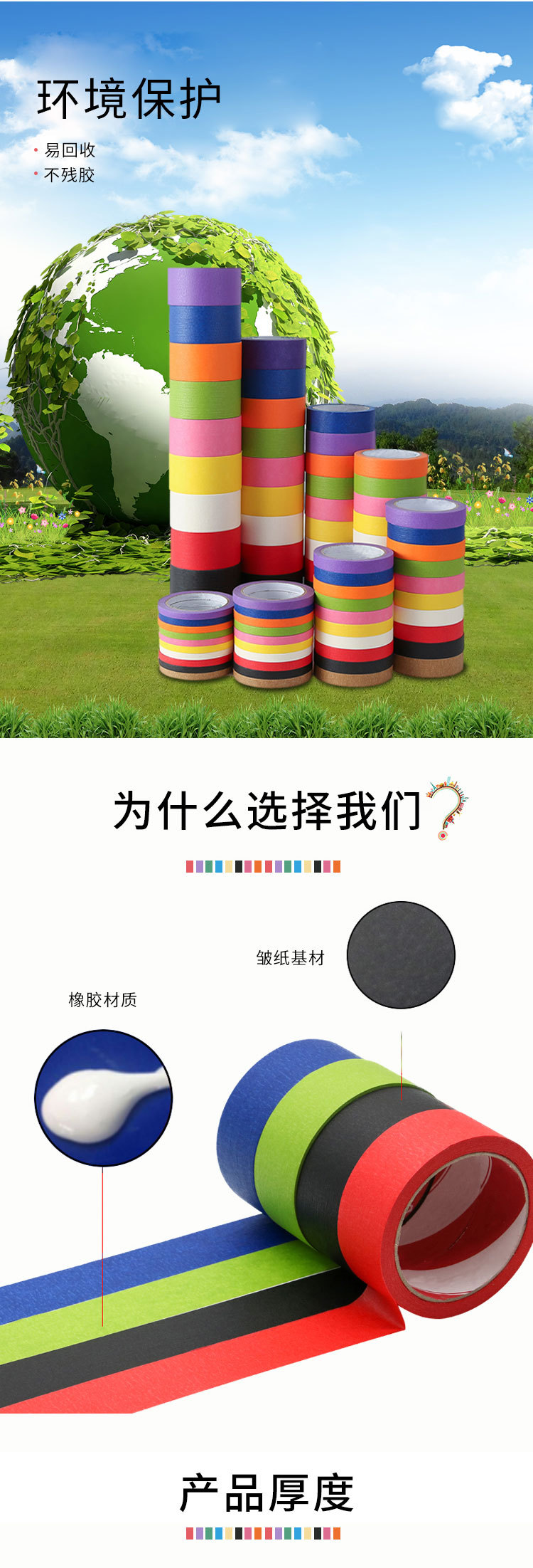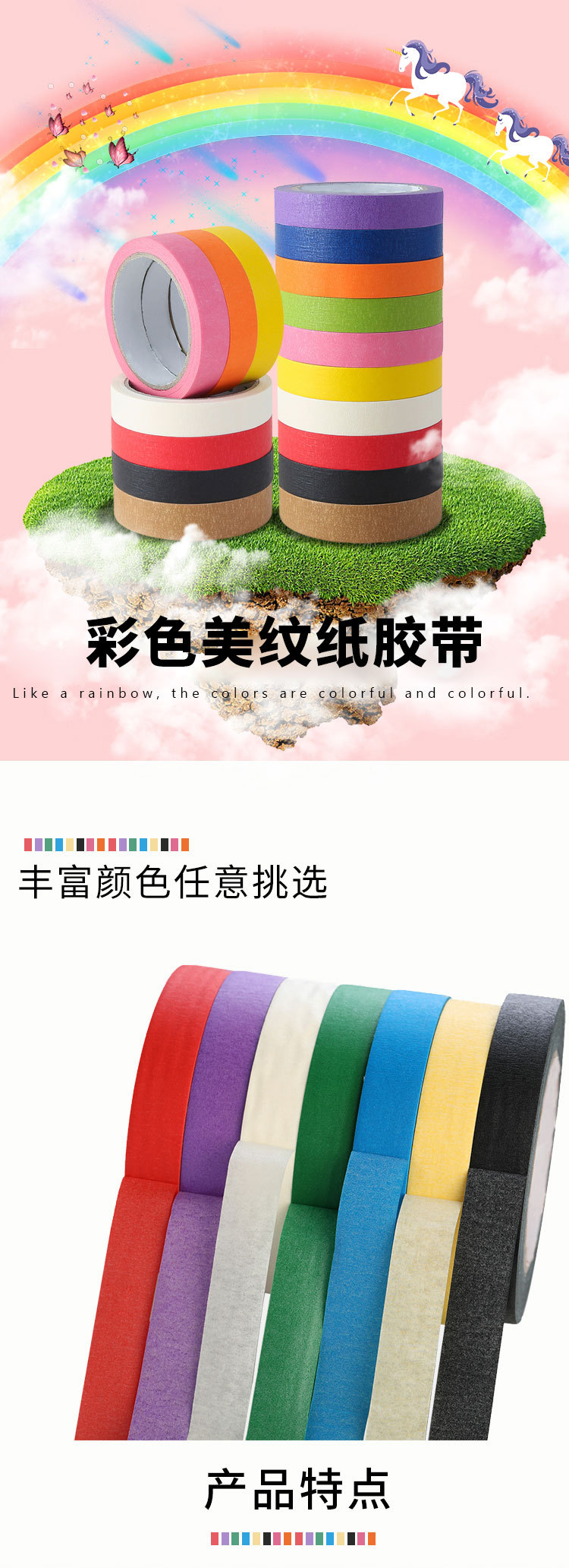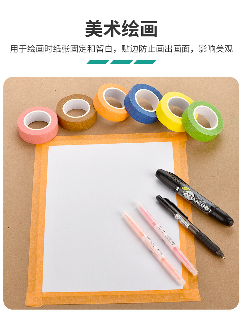 컬러 마스킹 테이프 50m 라인 마킹 아트 색상 구분 장식용 마스킹 테이프 불투명 쓰기 가능 무흔적 접착제