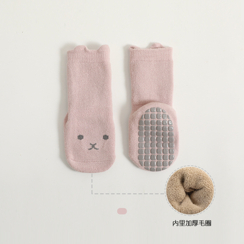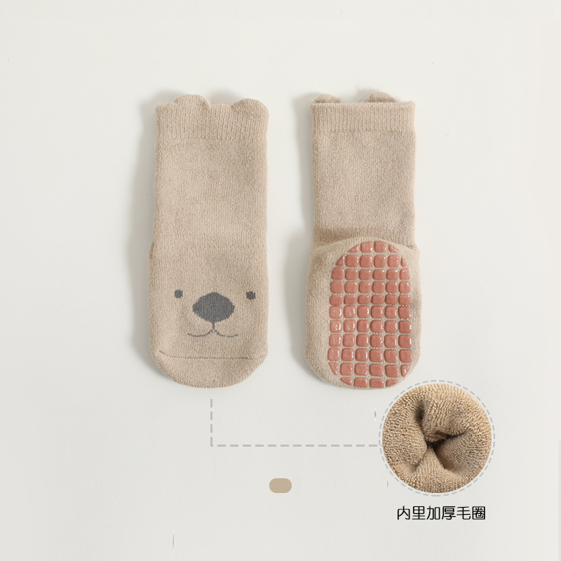 2021 두꺼운 새로운 가을과 겨울 어린이 바닥 양말 빗질면 아기 양말 아기 미끄럼 방지 유아 양말 도매