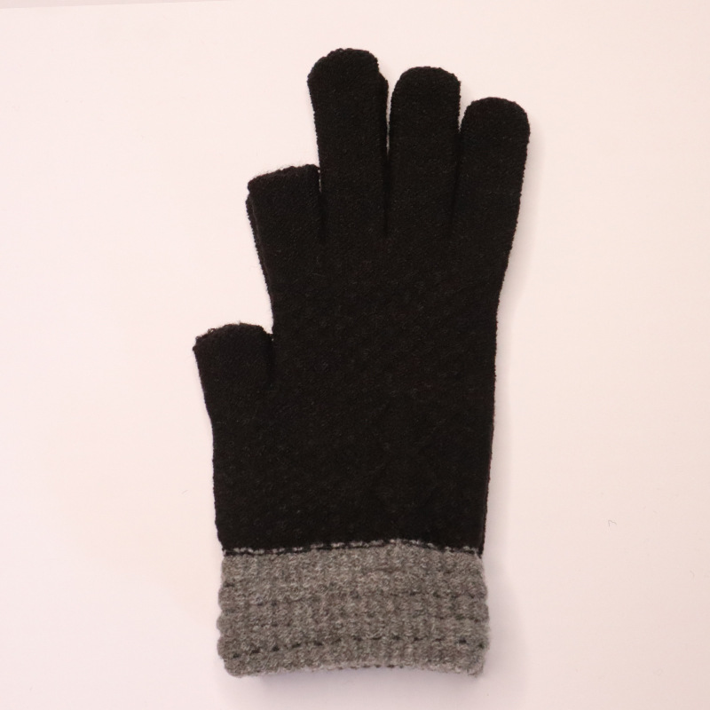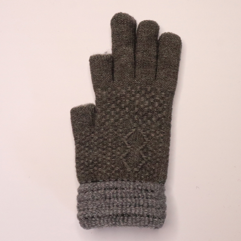 가을/겨울 2022 모조 양모 니트 기모 다이아몬드 남성용 장갑 두 손가락 따뜻한 장갑 도매 마구간