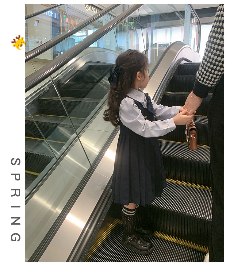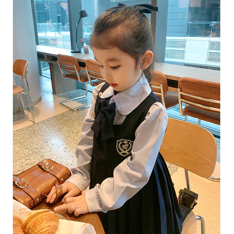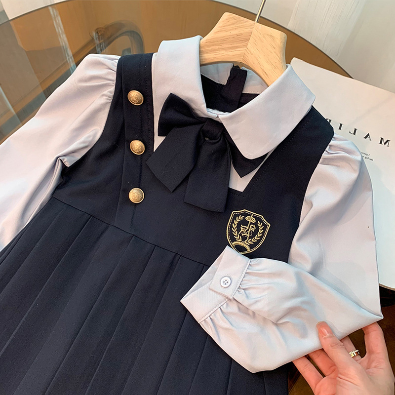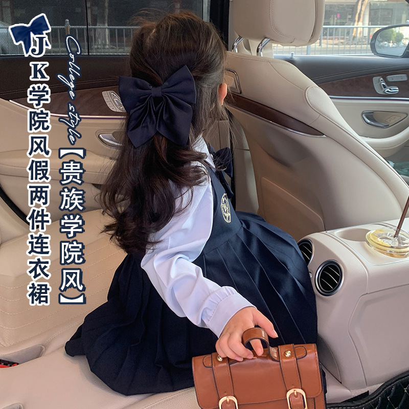 여자 대학 스타일 원피스 어린이 2024 가을 새 스타일 셔츠 원피스 가짜 투피스 아기 스타일키 공주 원피스 한국어스토어 가기