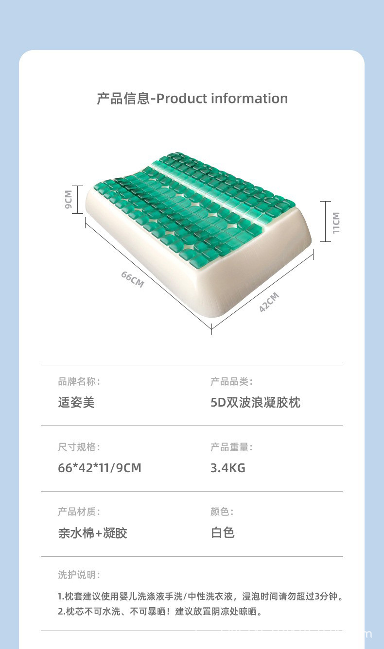 5D 하이 및 로우 젤 베개 메모리 폼 베개 코어 성인 여름 쿨 베개를위한 느린 반발 단일 자궁 경부 베개