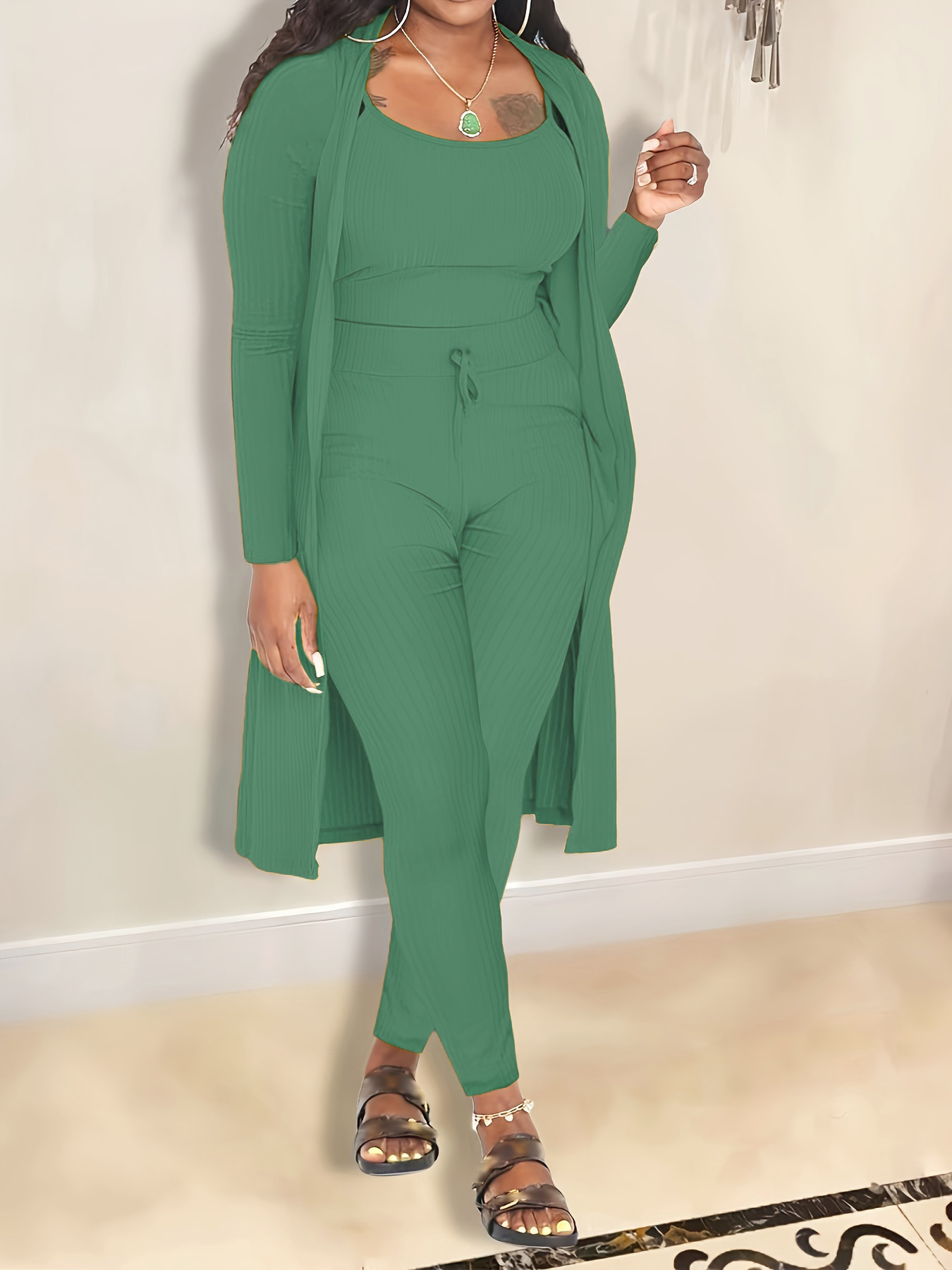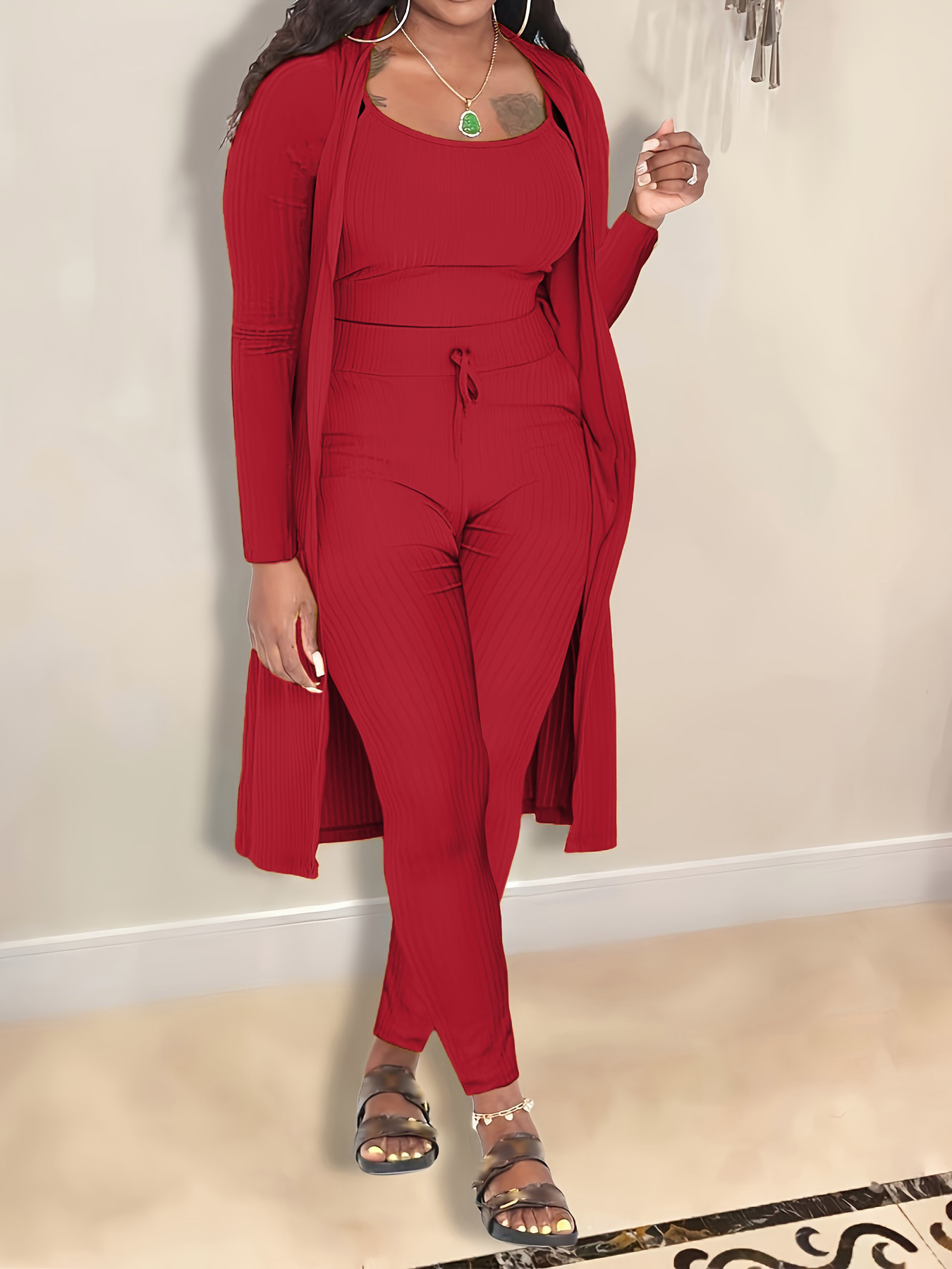 31238 새로운 유럽과 미국 여성의 대외 무역 여자 아마존 베스트 셀러 AliExpress 피트 단색 3 피스 세트스토어 가기