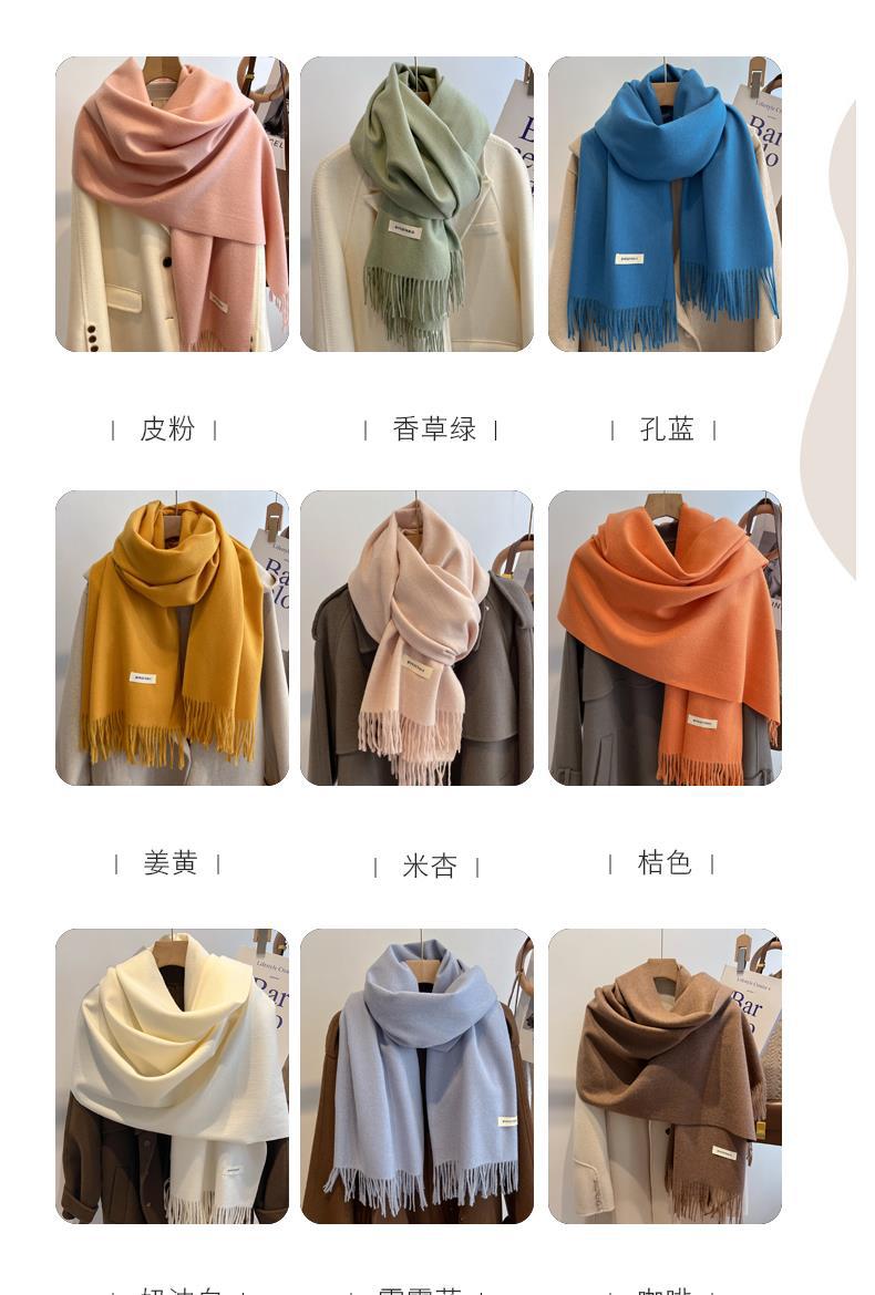 2023 새로운 캐시미어 스카프 여성의 가을과 겨울 한국식 모든 매치 일본식 단색 카키 남성용 따뜻한 목 숄스토어 가기