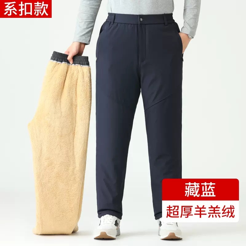 두꺼운 중년 및 노인 양고기 벨벳 겉옷 면 바지 할아버지 남성용 느슨한 바지를 기모 겨울 아빠 바지