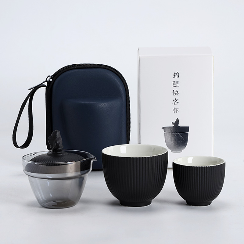유리 여행 차 세트 세트 비즈니스 선물 휴대용 동반 선물 야외 익스프레스 컵 한 냄비 석기의 두 컵
