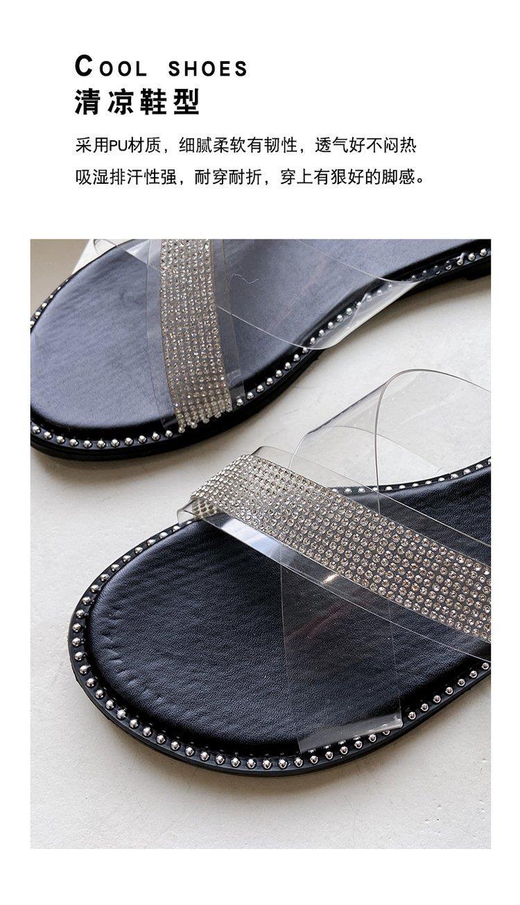 2022 새로운 여름 한국 스타일 크로스 플랫 샌들 여성용 심플 라인 석 외부 소프트 솔 사이버 연예인