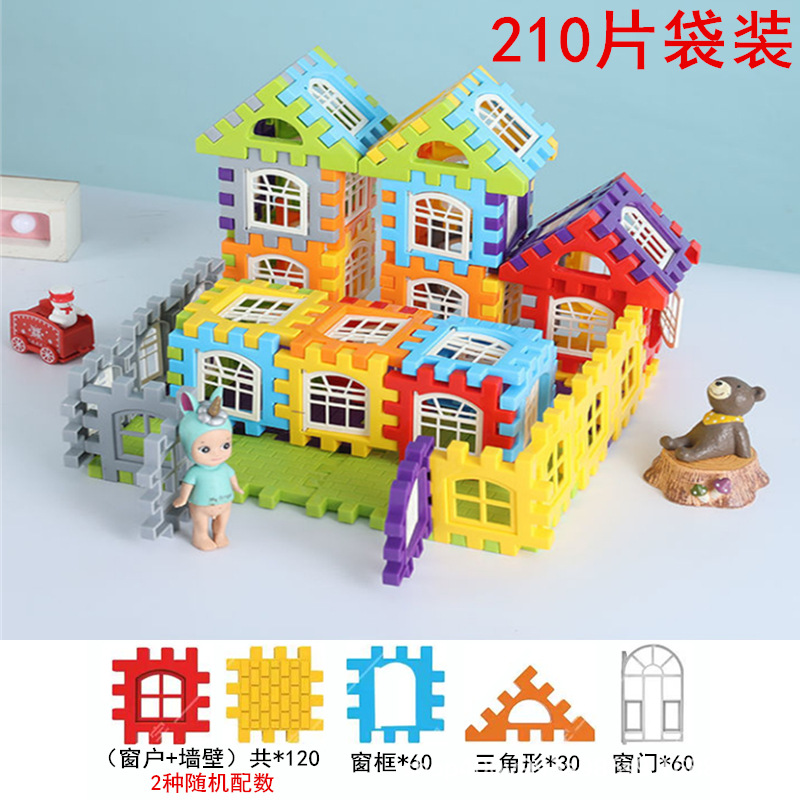 • 빌딩 블록 210 장 [백장 + 도면 60 장 등] 가 봉투에 포장되고 있습니다