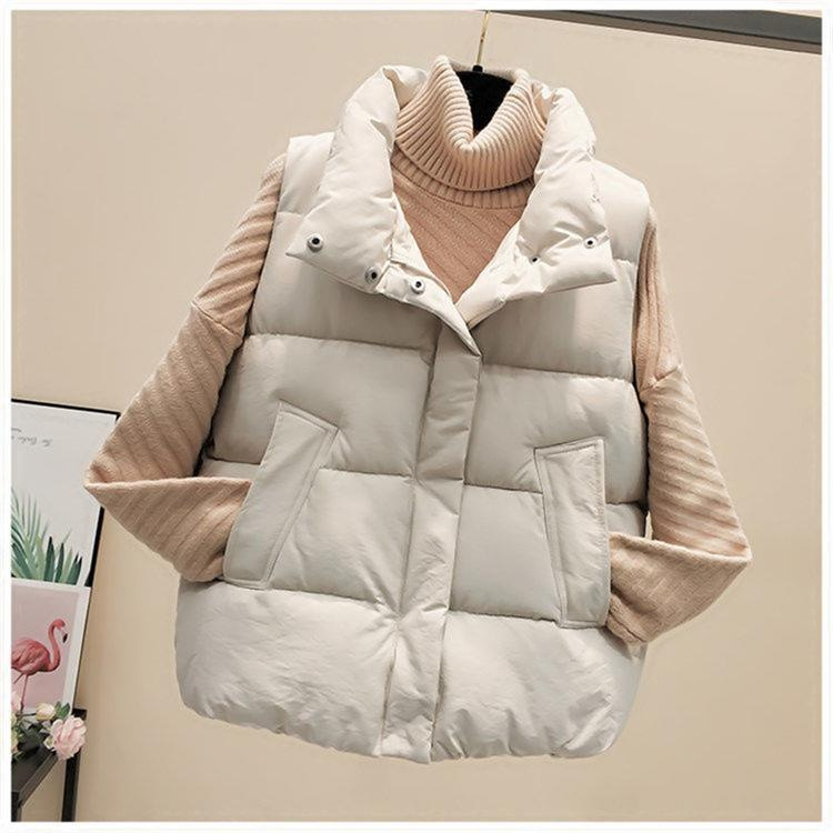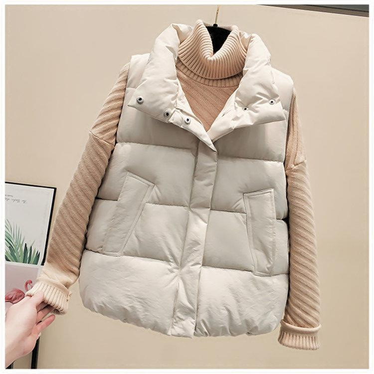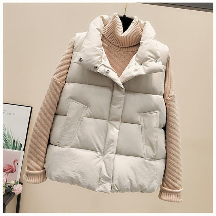 2025 가을 겨울 신상 모조 다운 조끼 여성용 면옷 짧은 스타일 슬림핏 조끼 따뜻한 면조끼 여성용