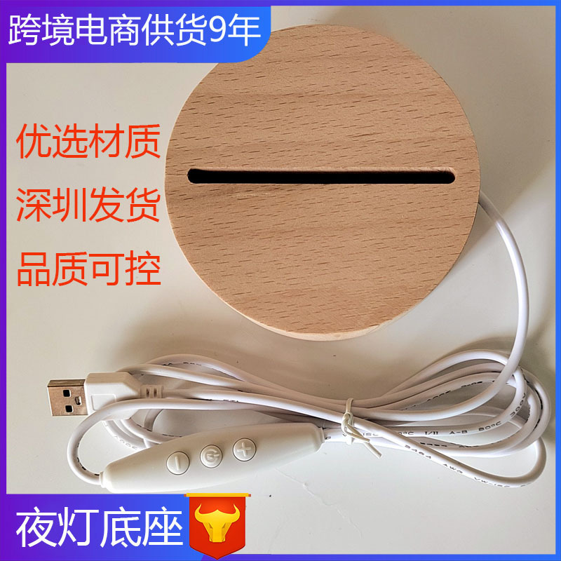 外贸usb小夜灯实木底座3d亚克力夜灯木质实木圆形底座插电小夜灯