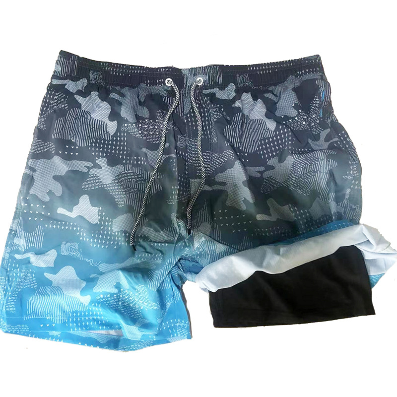 유럽과 미국 플러스 사이즈 가짜 투피스 쿼드 팬츠 속건 반바지 비치 서핑 당황 방지 더블 레이어 스트레치 안감 비치 팬츠