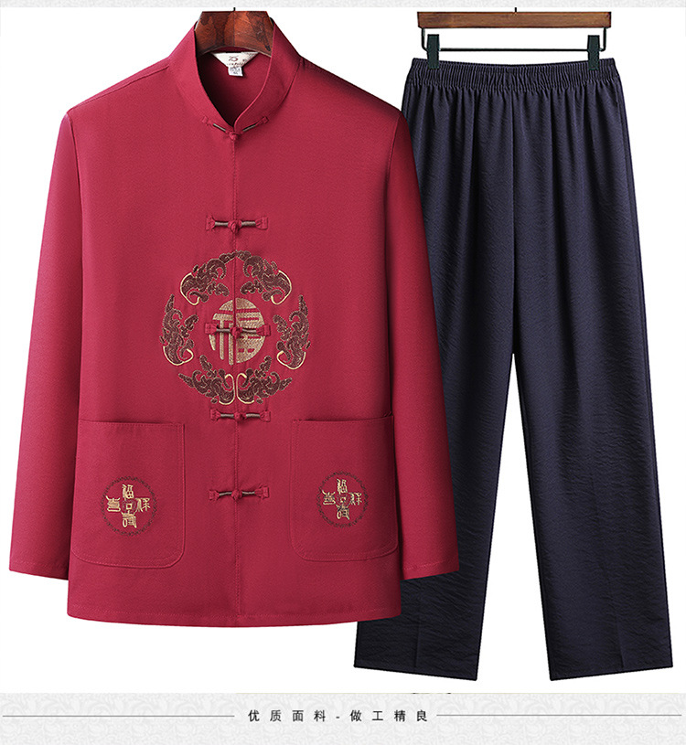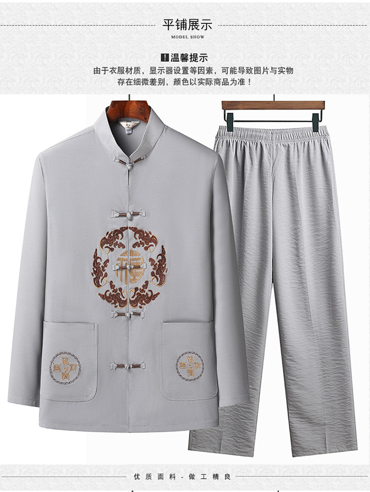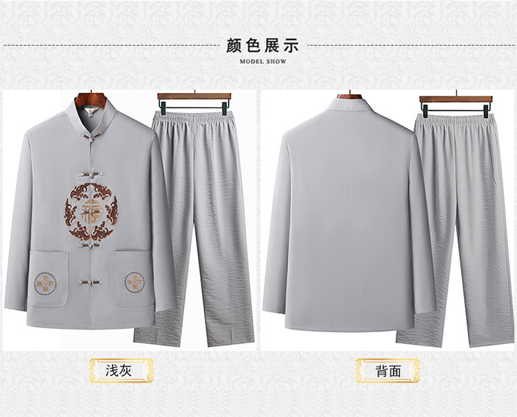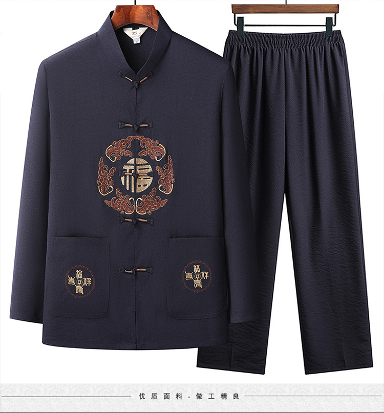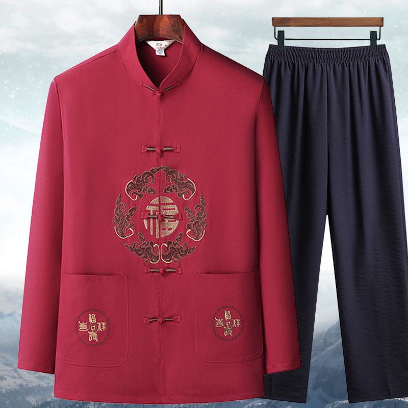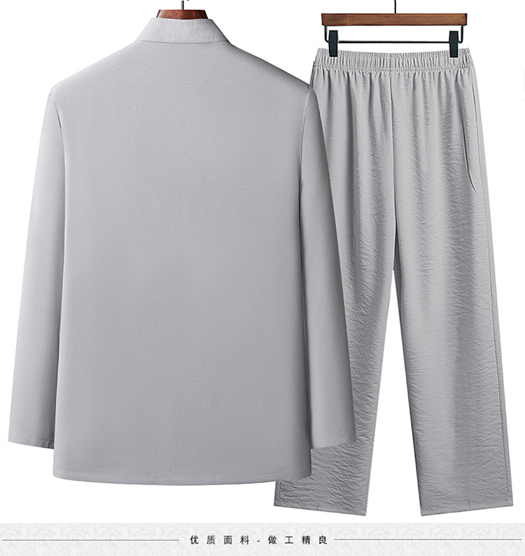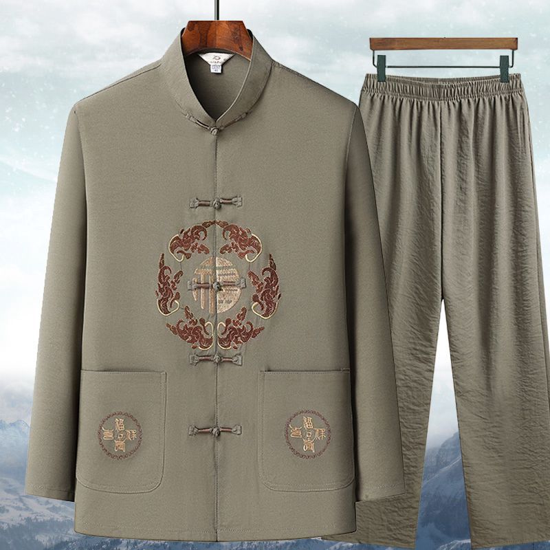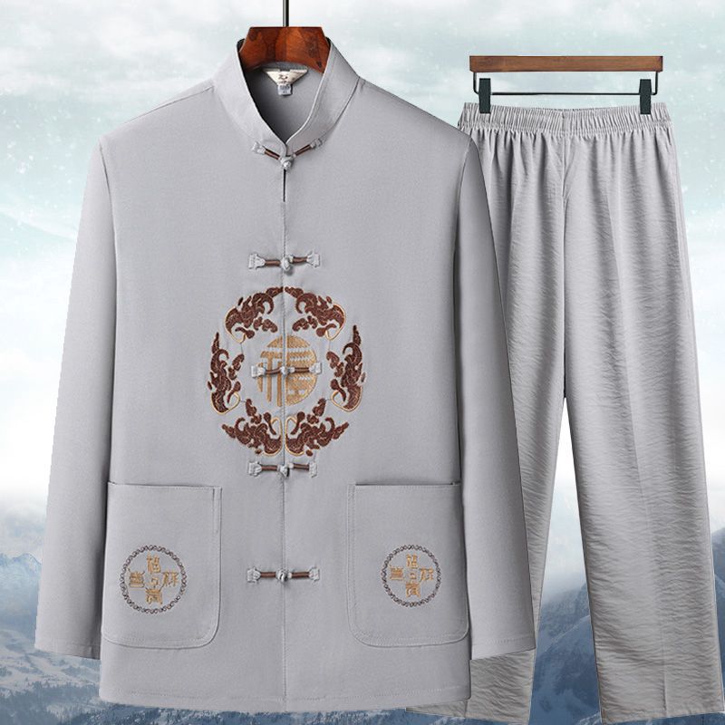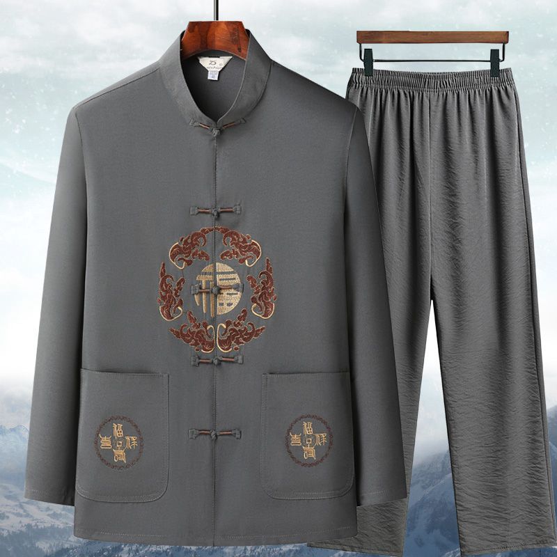 Tang 세트 남자의 중국 스타일 긴팔 세트 봄과 가을 중년 및 노인 아빠의 여름 아침 운동 한푸 할아버지의 생일 세트