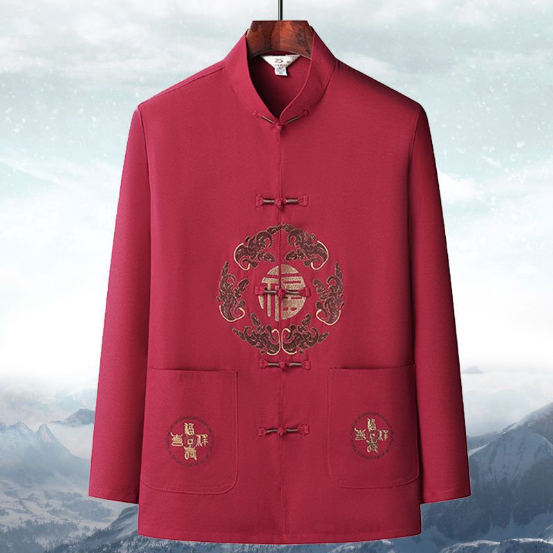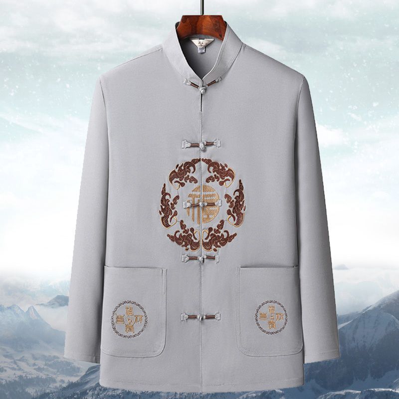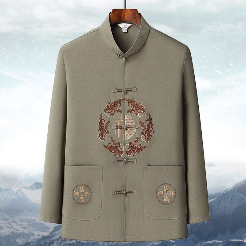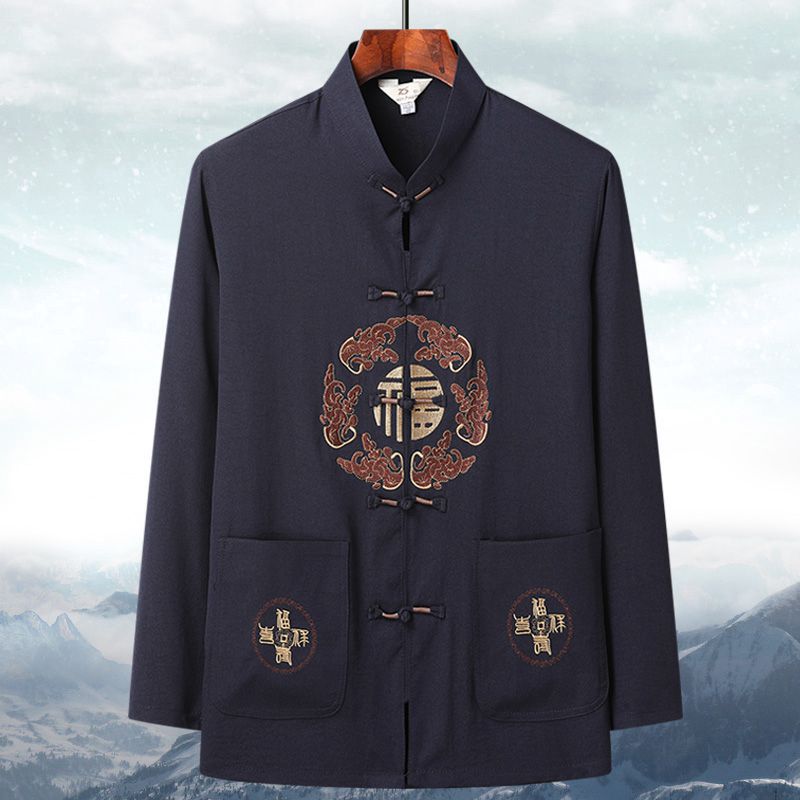 Tang 세트 남자의 중국 스타일 긴팔 세트 봄과 가을 중년 및 노인 아빠의 여름 아침 운동 한푸 할아버지의 생일 세트스토어 가기