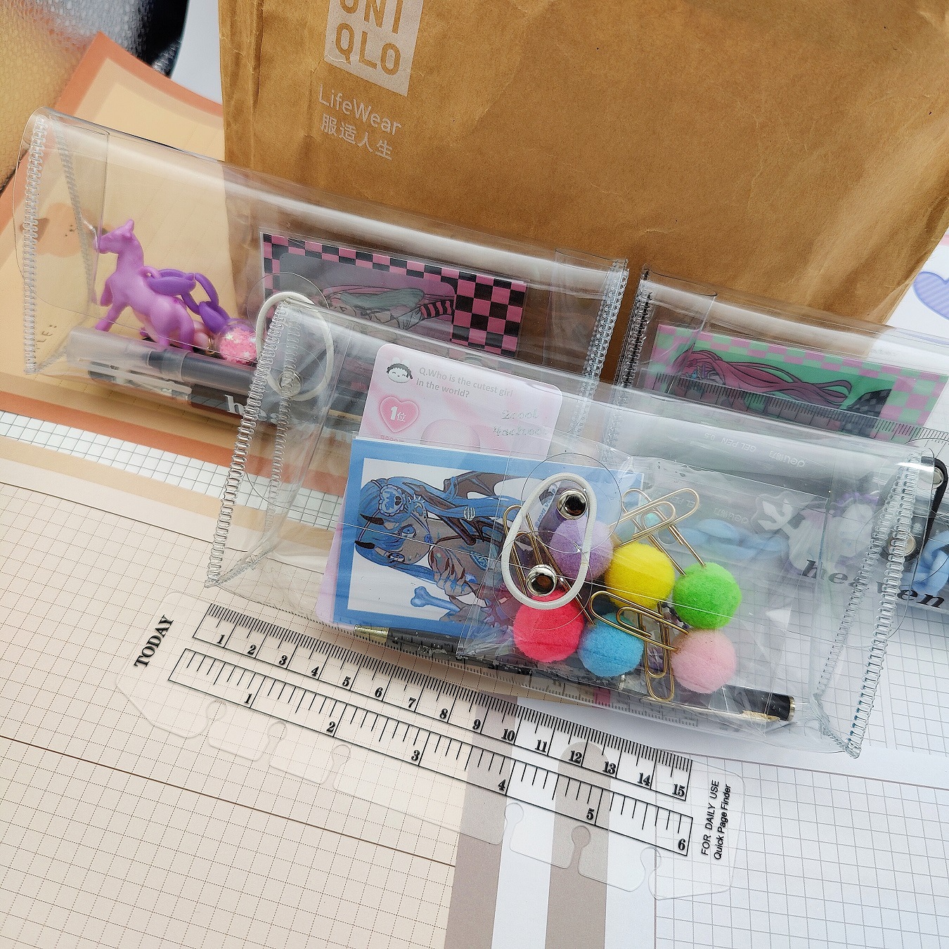 한국 스타일 심플 인 스타일 인터넷 연예인 같은 스타일 투명 PVC 연필 가방 방수 보관 가방 학생 문구 보관 연필 상자