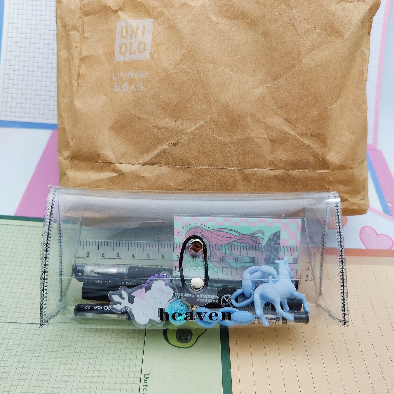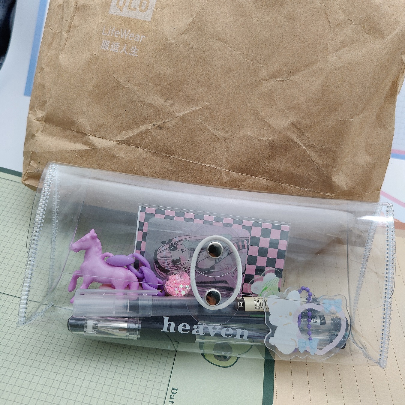 한국 스타일 심플 인 스타일 인터넷 연예인 같은 스타일 투명 PVC 연필 가방 방수 보관 가방 학생 문구 보관 연필 상자스토어 가기