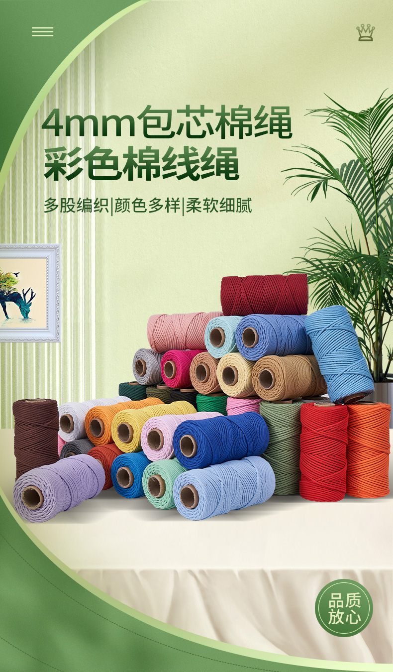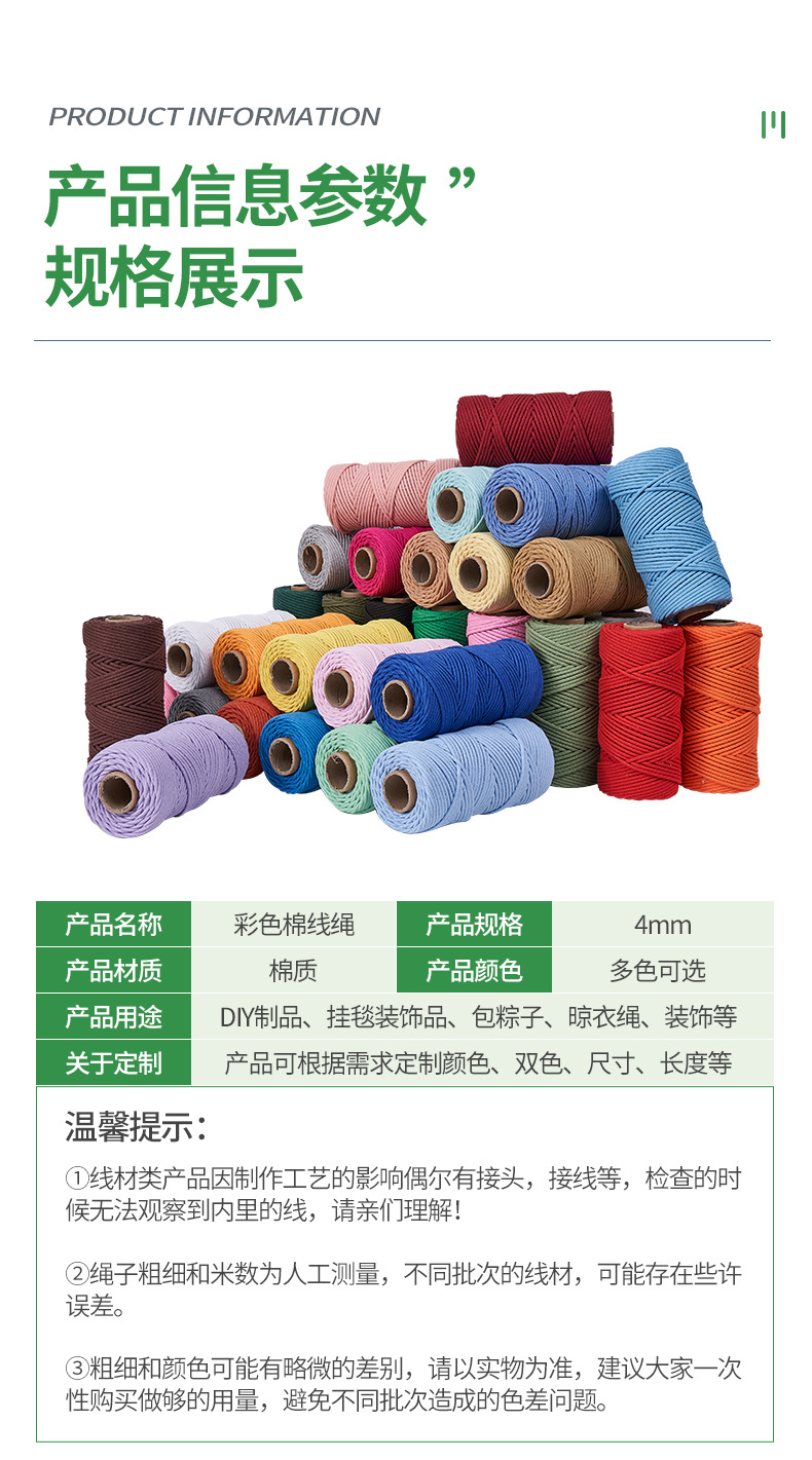 4mm 컬러 코어 코튼 로프 컬러 태피스트리 로프 태그 로프 포장 로프 바인딩 로프 수동 DIY 얇은면 로프스토어 가기