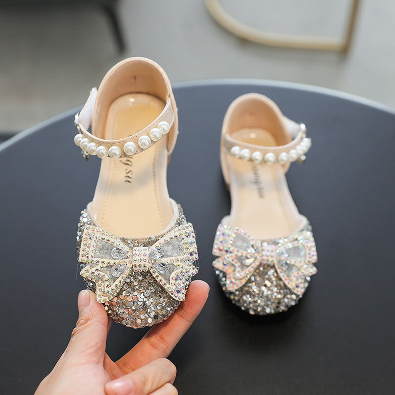 2023 새로운 여아 신발 패션 여름 중학교 어린이 부드러운 플랫 신발 발가락 샌들 댄스 신발 공주 신발 크리스탈스토어 가기