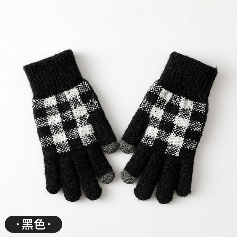 새로운 겨울 장갑 야외 니트 남성과 여성의 승마 기모 터치 스크린 학생 격자 무늬 손가락 방한 따뜻한 장갑