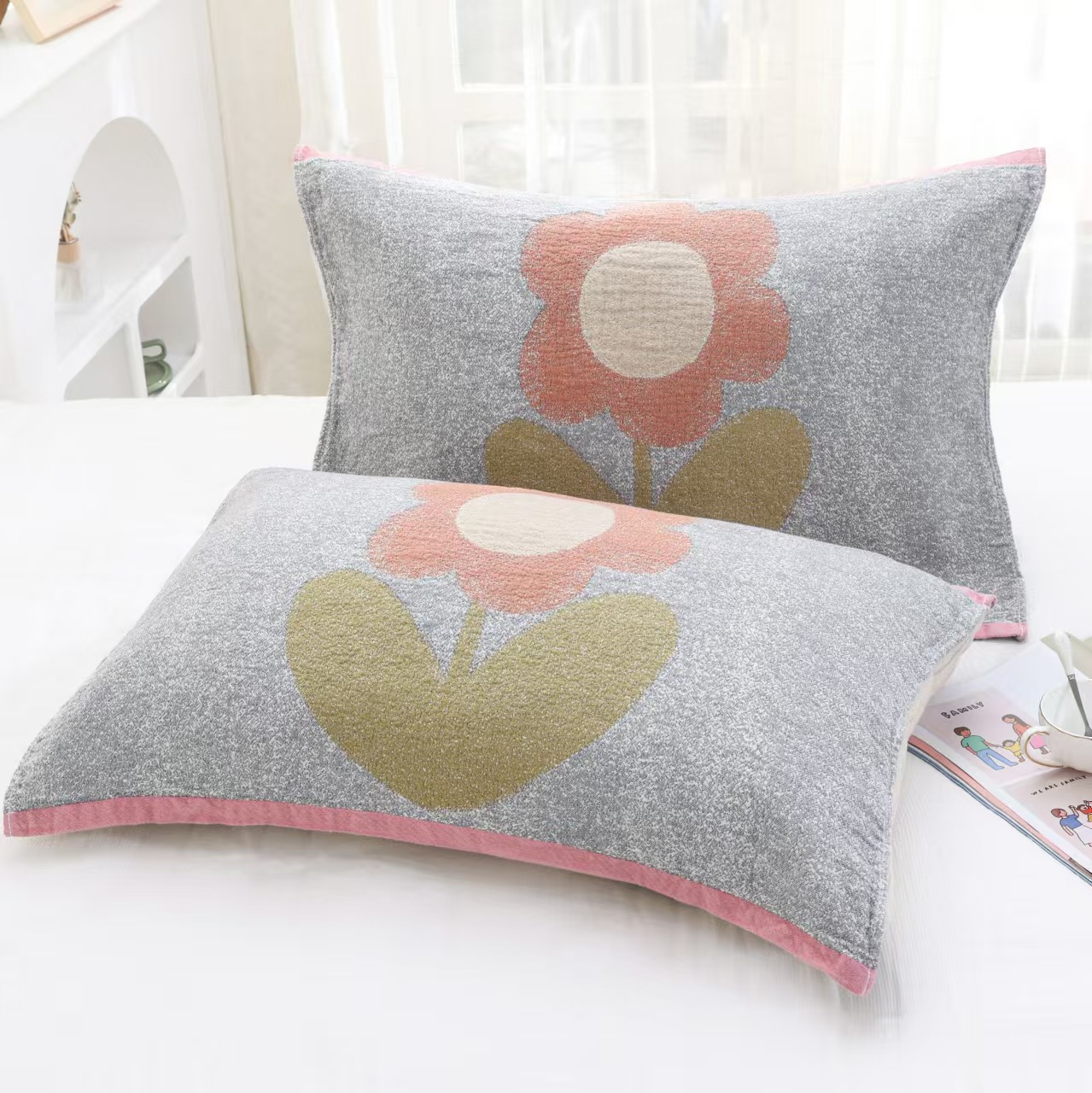 Disni 순면 거즈 베개 타월 정품 싱글 베개 머리띠 유럽식 성인 쉬운 세척 커플 패션