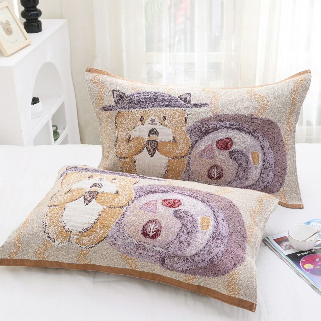 Disni 순면 거즈 베개 타월 정품 싱글 베개 머리띠 유럽식 성인 쉬운 세척 커플 패션스토어 가기