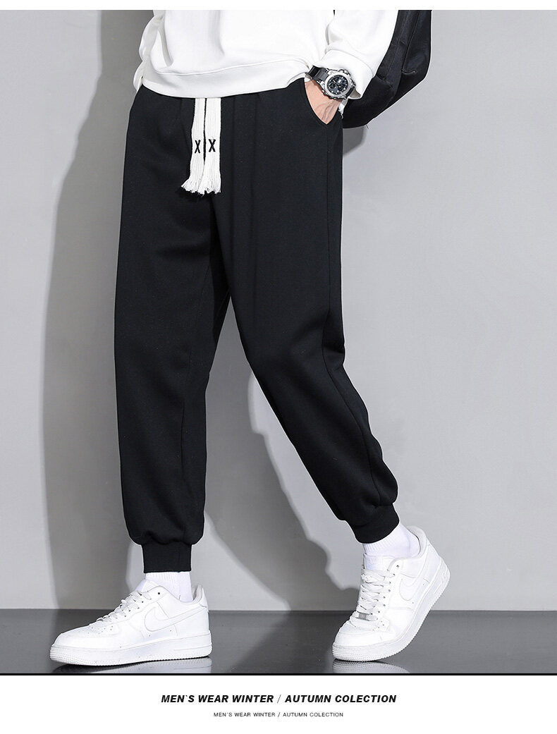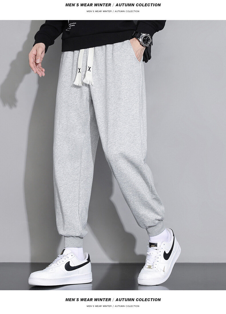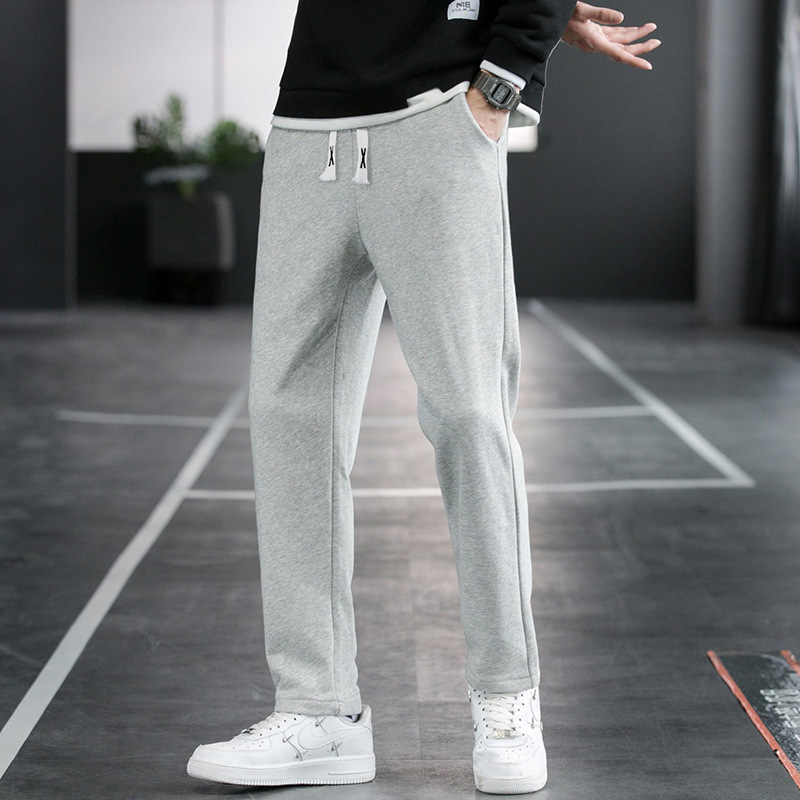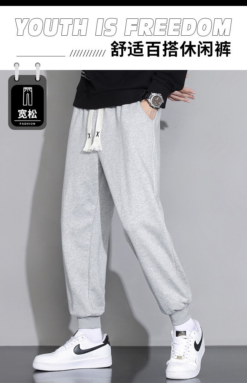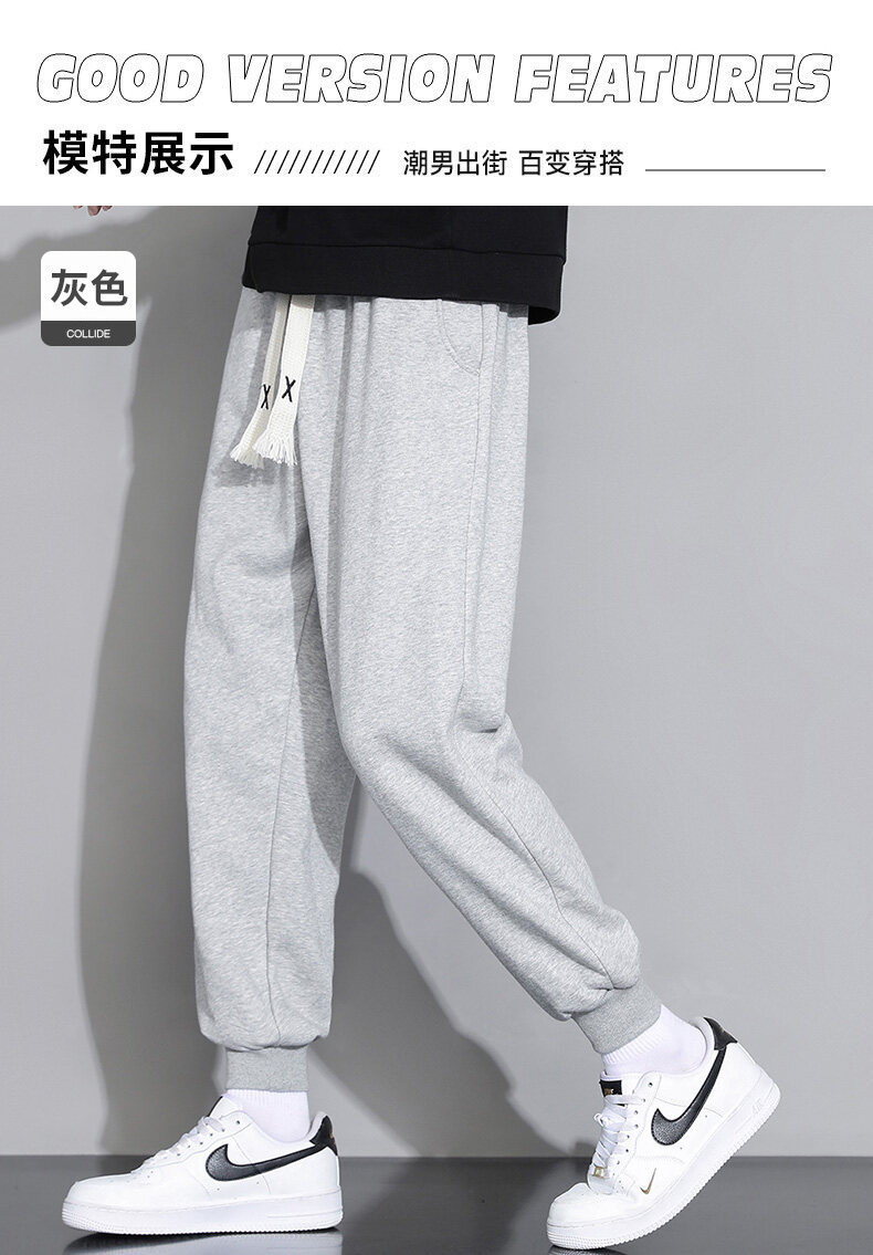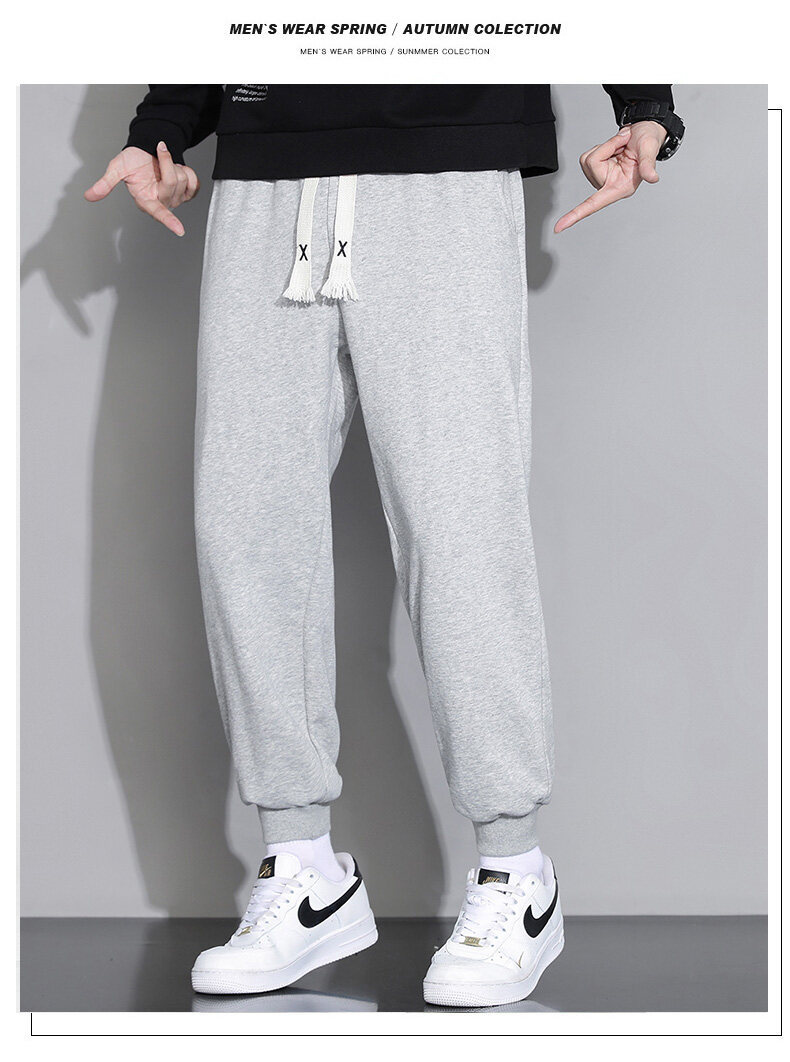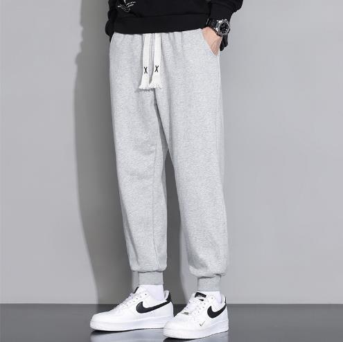바지 남자 바지 봄과 가을 한국 스타일 느슨한 회색 스포츠 바지 남자의 미국 스타일 새로운 니트 캐주얼 바지