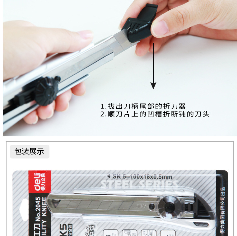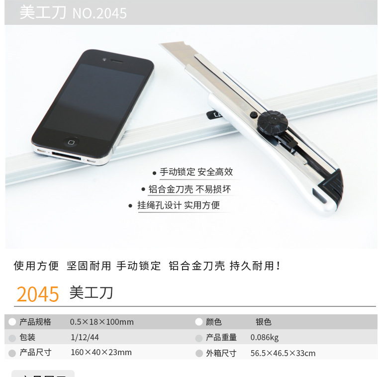 델리 대형 아트 나이프 2045 금속 수제 칼 대형 벽지 칼 절단 칼 물류 익스프레스 포장 풀기 칼