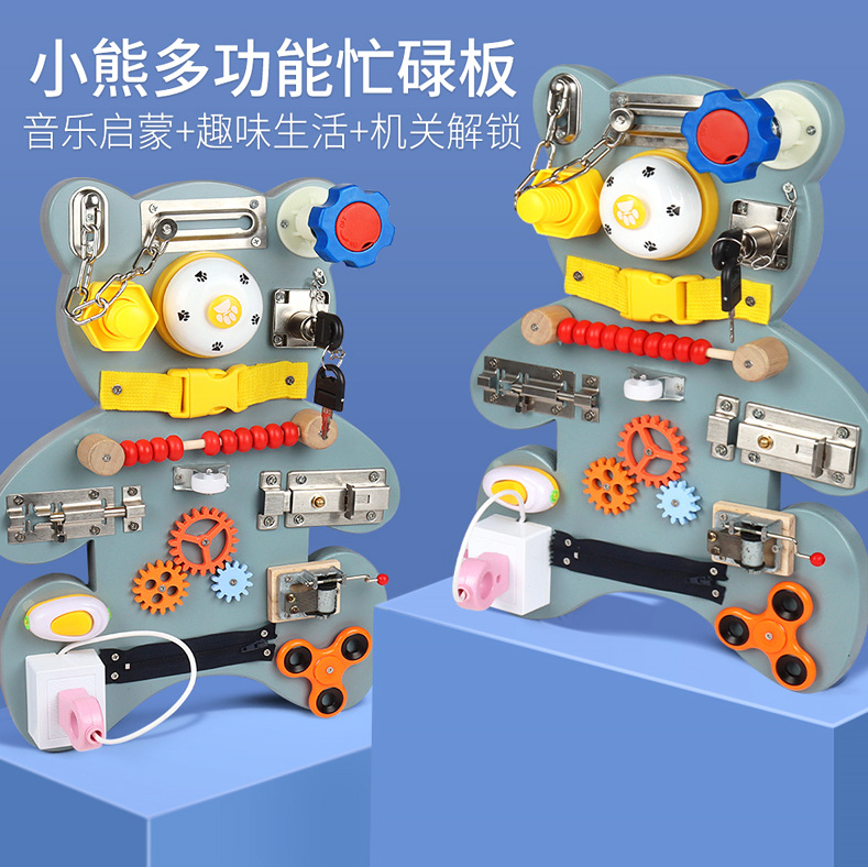어린이 나무 곰 바쁜 보드 데스크탑 게임 잠금 해제 장난감 유치원 아기 조기 교육 건물 블록