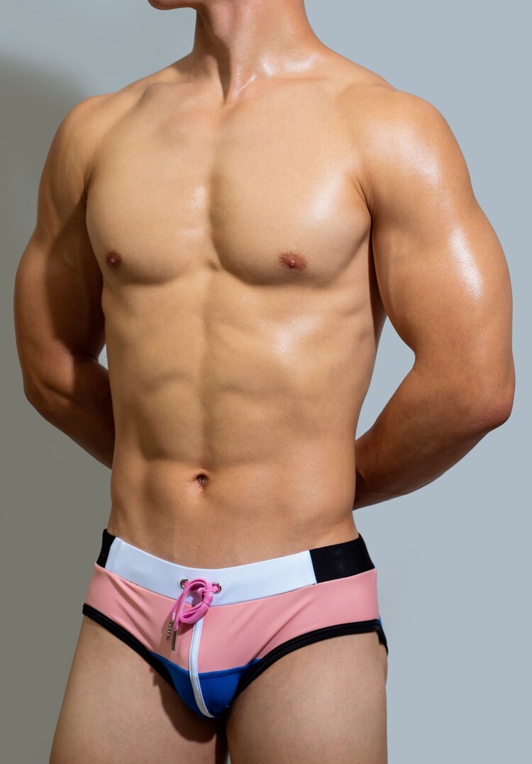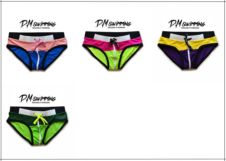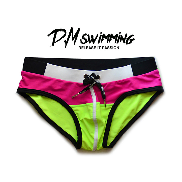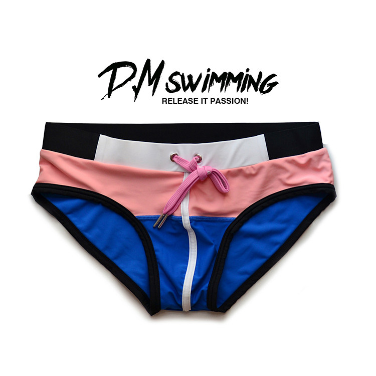 D.M 남성 수영 트렁크 낮은 허리 섹시한 브리프 컬러 매칭 패션 트렌디 한 해변 수영장 인터넷 유명 인사 파티 유럽과 미국의 성격 패션스토어 가기