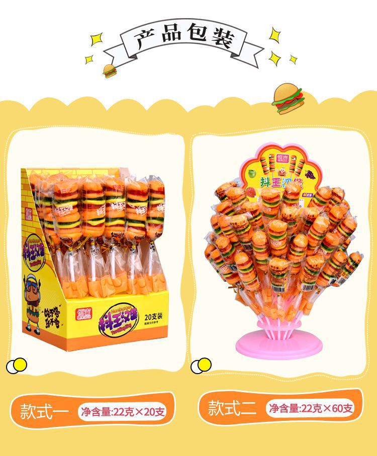 크리 에이 티브 Q 탄성 구미 햄버거 설탕 주스 구미 10-60 어린이 롤리팝 대량 간식 도매스토어 가기