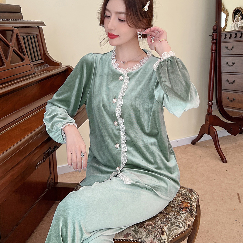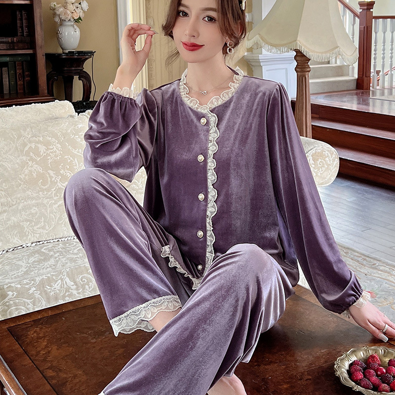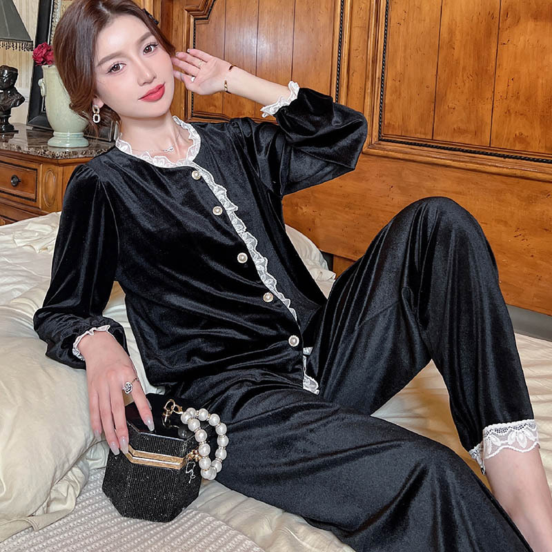 Xiaoxiangfeng 잠옷 여성 봄, 가을, 겨울 골드 벨벳 긴팔 인터넷 연예인 스타일은 집 밖에서 입을 수 있습니다 옷 2024 새로운 스타일