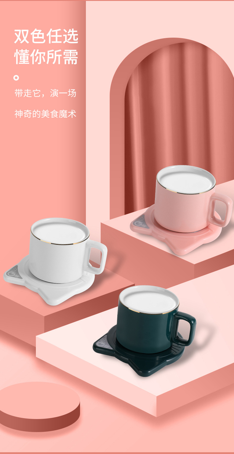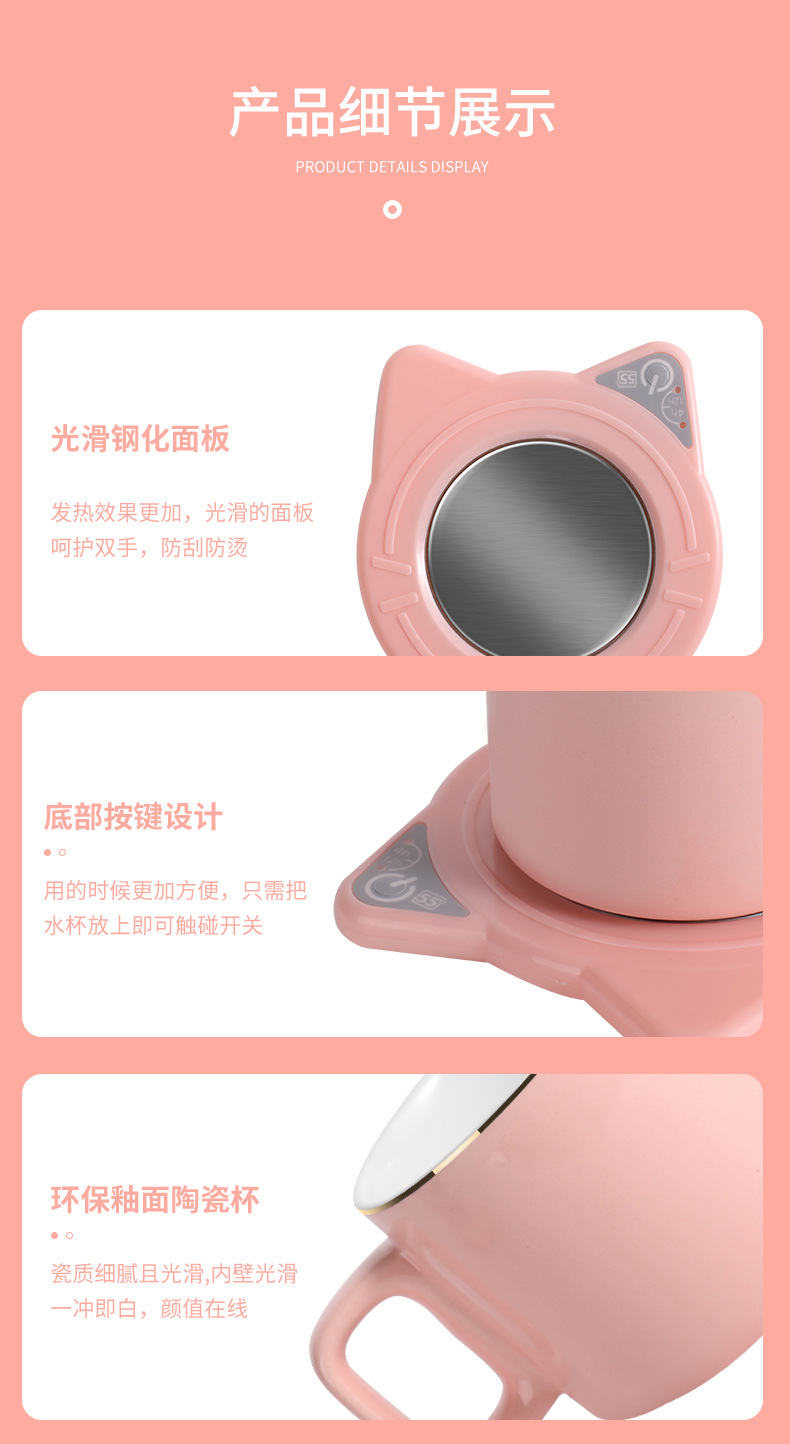 55 도 고양이 일정한 온도 코스터 세트 세라믹 따뜻한 코스터 활동 선물 고양이 귀 따뜻한 컵 아기 우유 일정한 온도