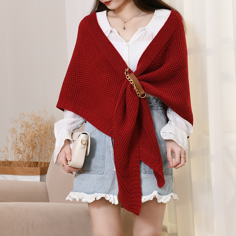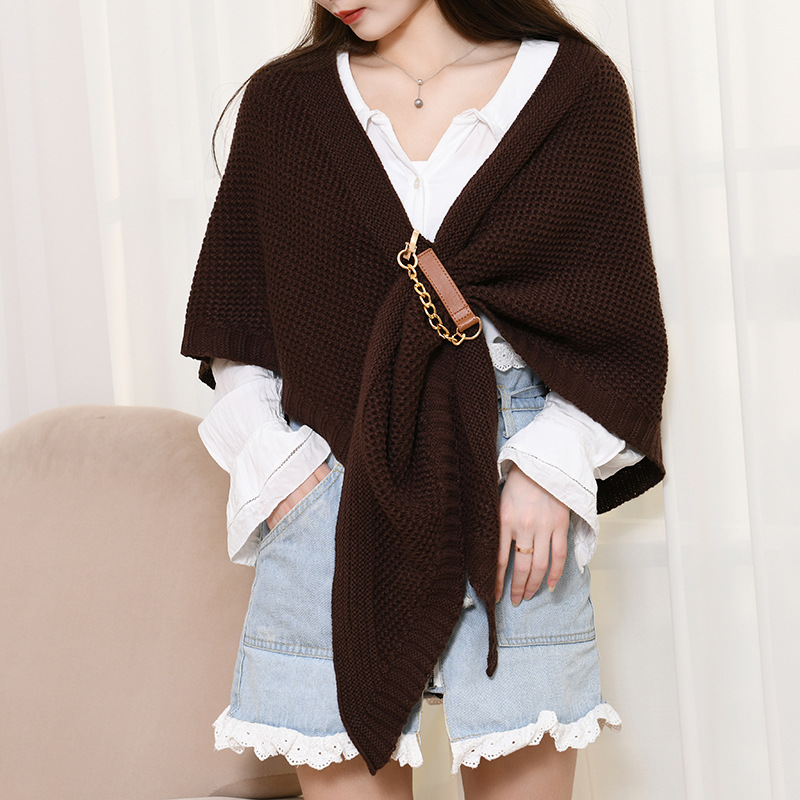 새로운 봄과 가을 모든 매치 패션 가죽 버클 체인 삼각형 스카프 여성용 한국식 착용 니트 캐시미어 착용 숄