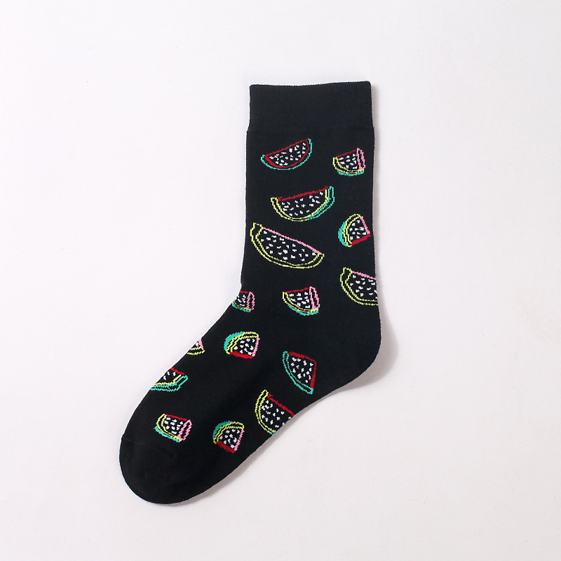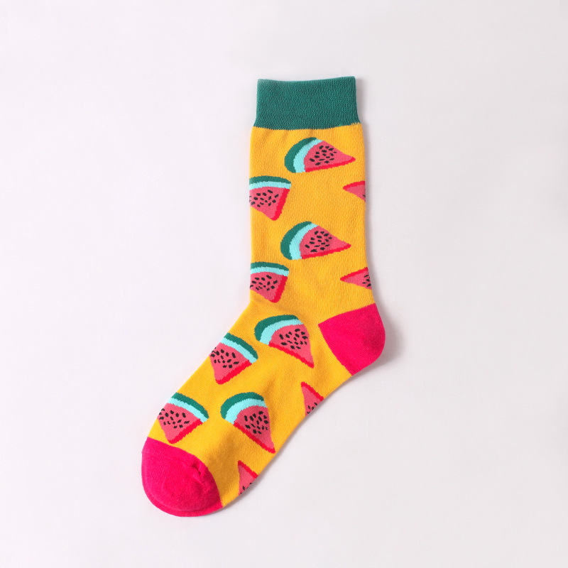 양말 여성 과일 가을과 겨울 스타킹 만화 수박 딸기 스포츠 면 양말 높은 스타킹 신장 면화 더미 양말