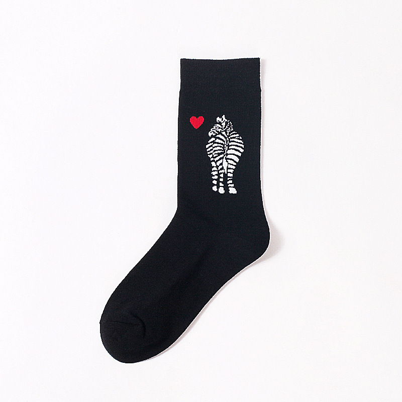 • 4006-45 긴 검은 양말 얼룩말 플러스 하트