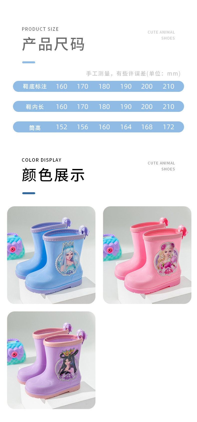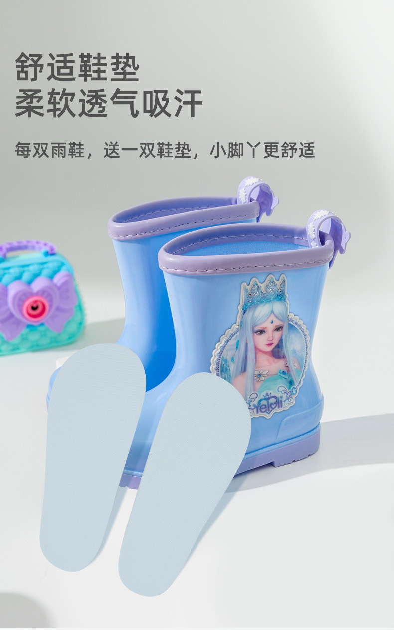 정품 예 Luoli 공주 어린이 장화 여아 사계절 미끄럼 방지 고무 신발 짧은 튜브 어린이 아기 장화스토어 가기