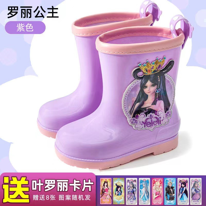 정품 예 Luoli 공주 어린이 장화 여아 사계절 미끄럼 방지 고무 신발 짧은 튜브 어린이 아기 장화