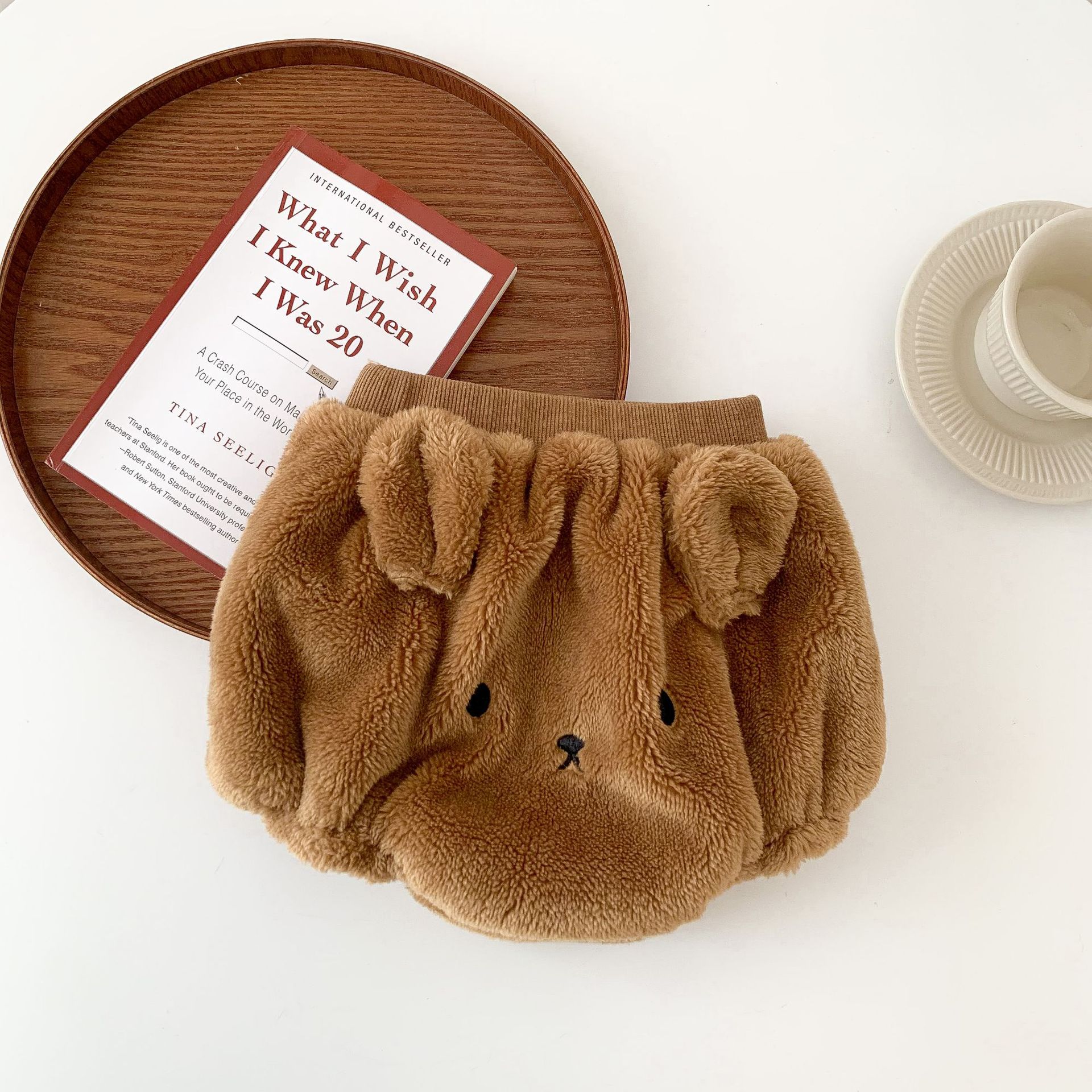 INS 한국 스타일 아기 남성과 여성 겨울 캐시미어 만화 두꺼운 반바지 아기 따뜻한 유행 대형 PP 바지스토어 가기