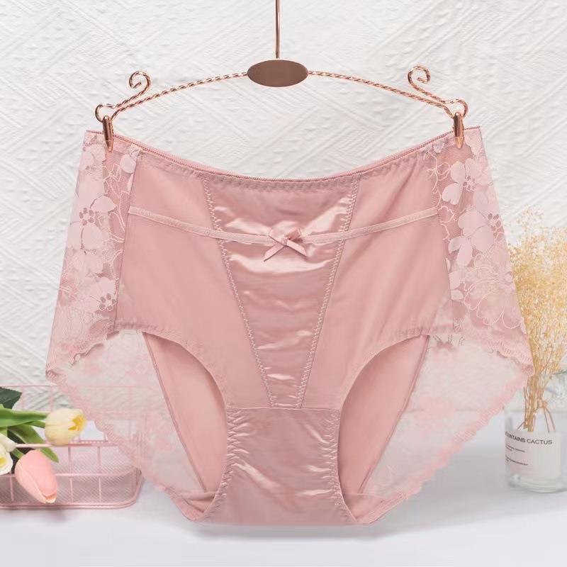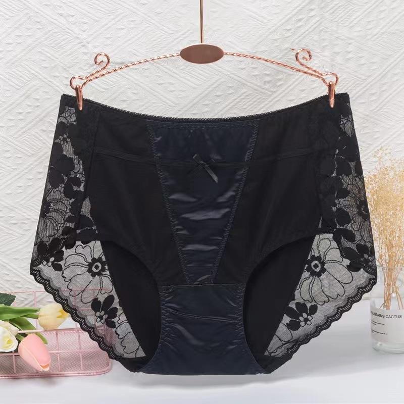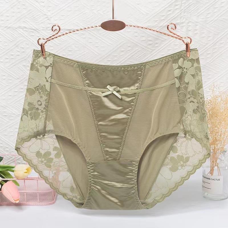 플러스 사이즈 모달 미드 웨이스트 레이스 섹시한 팬티 나비 스티치 여성을위한 높은 탄성 통통녀 항균 가랑이 속옷스토어 가기
