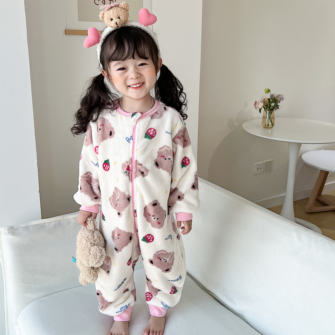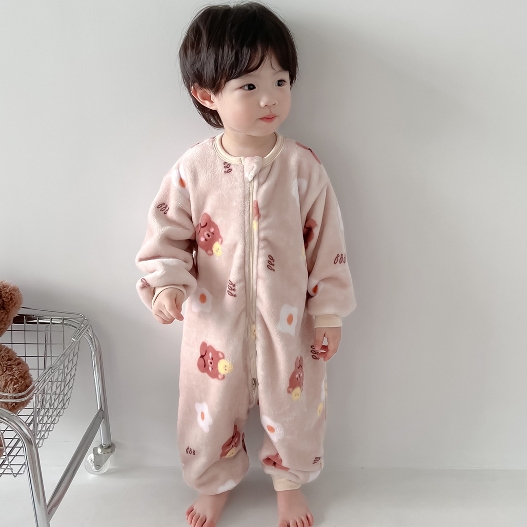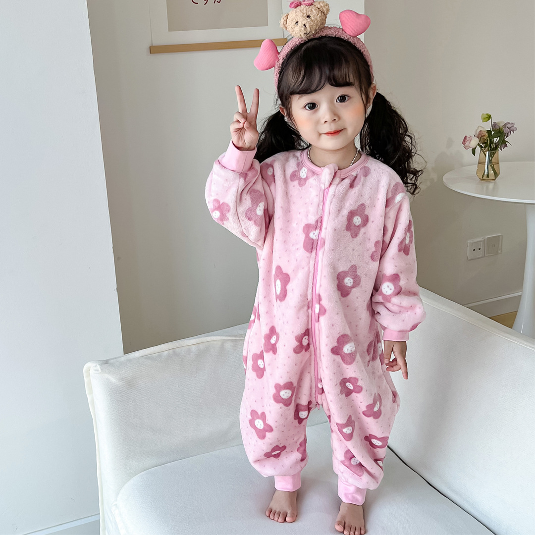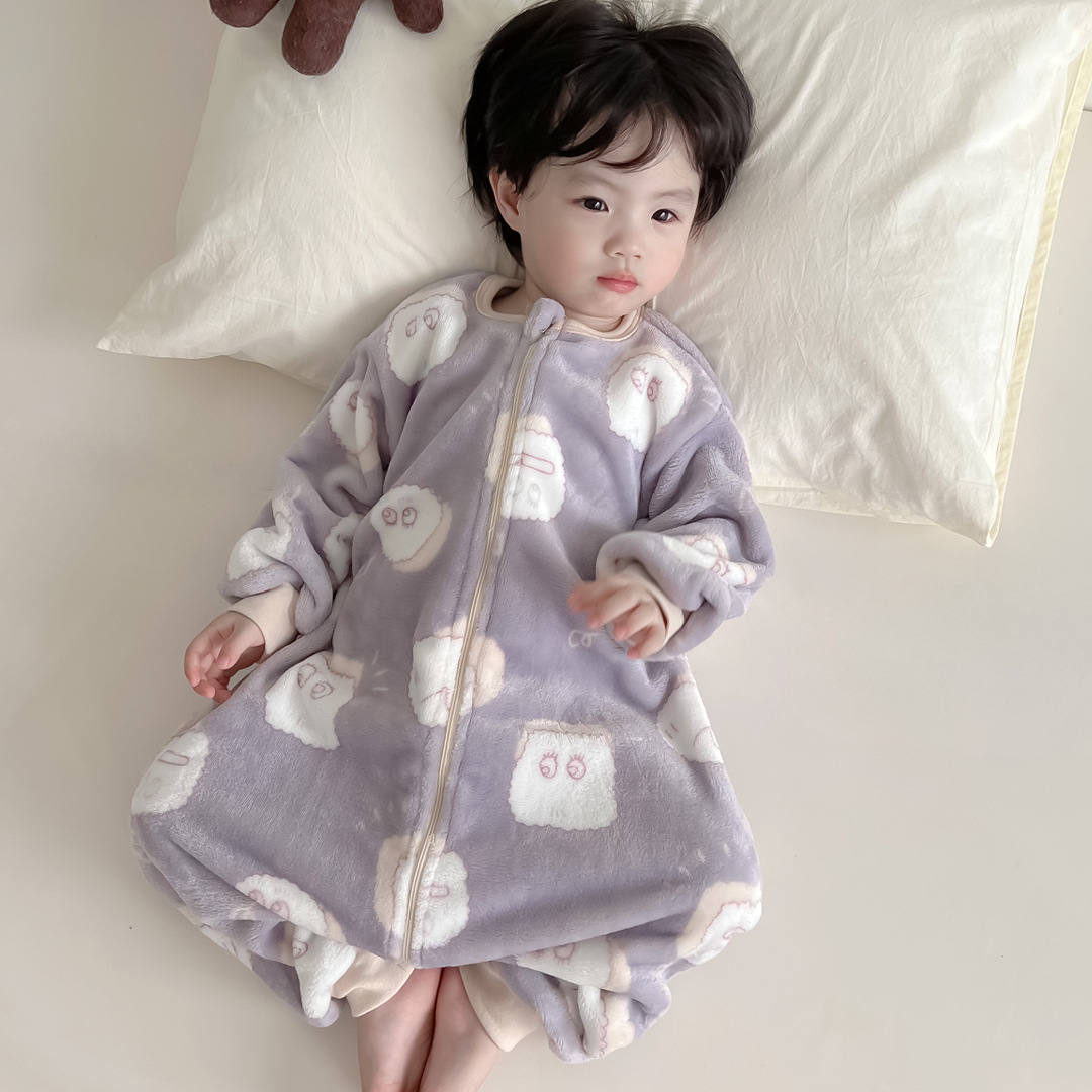 가을과 겨울 아기 플란넬 원피스 잠옷 소년과 소녀 만화 분할 다리 침낭 어린이 산호 양털 원피스 옷스토어 가기
