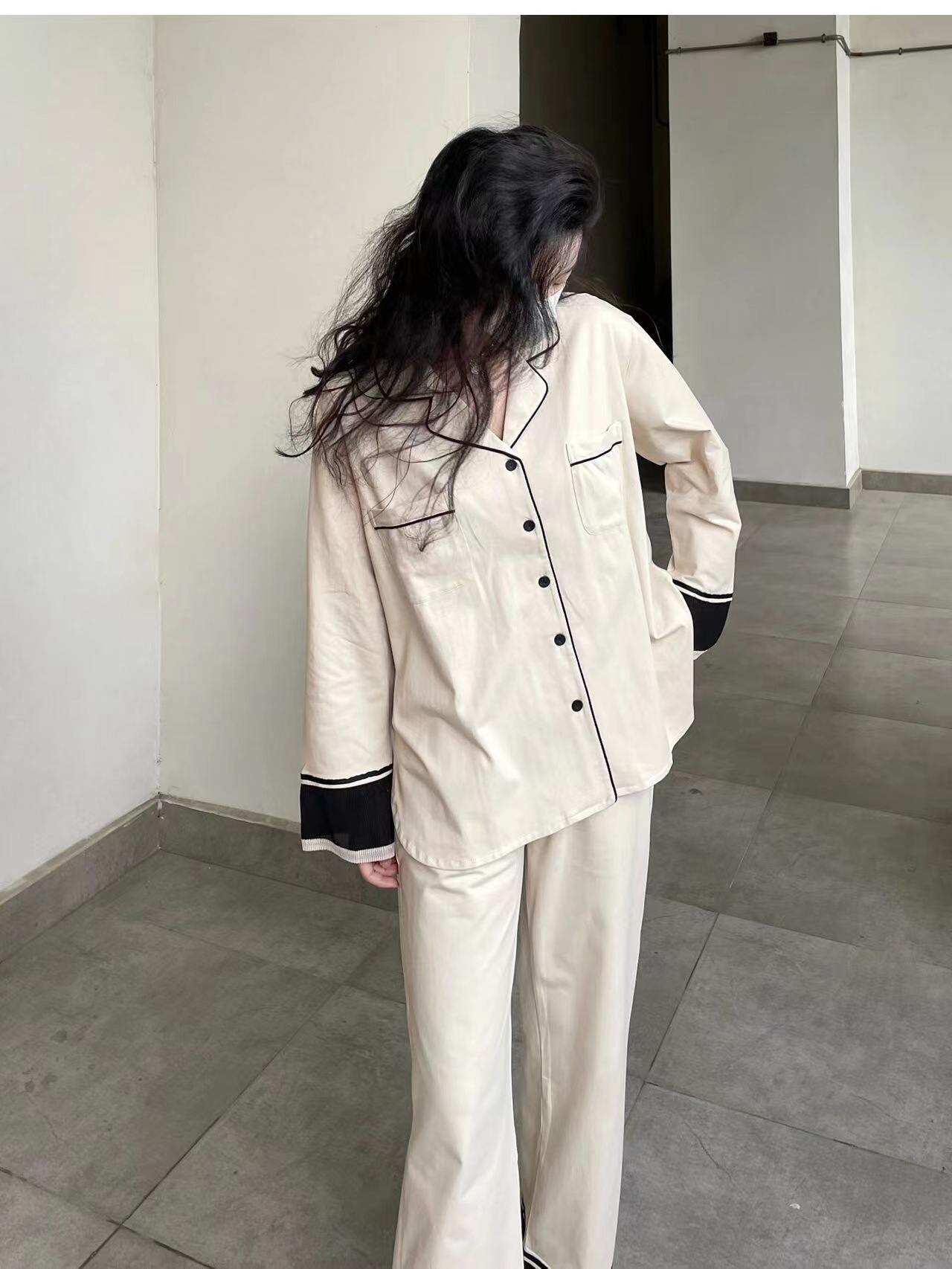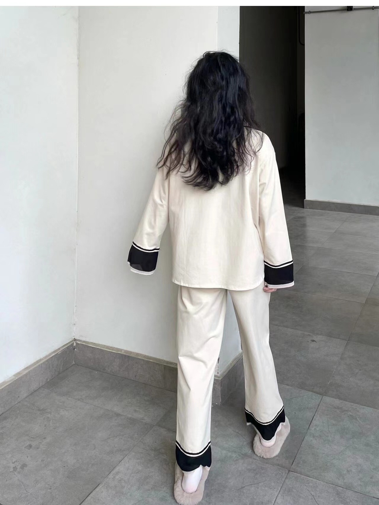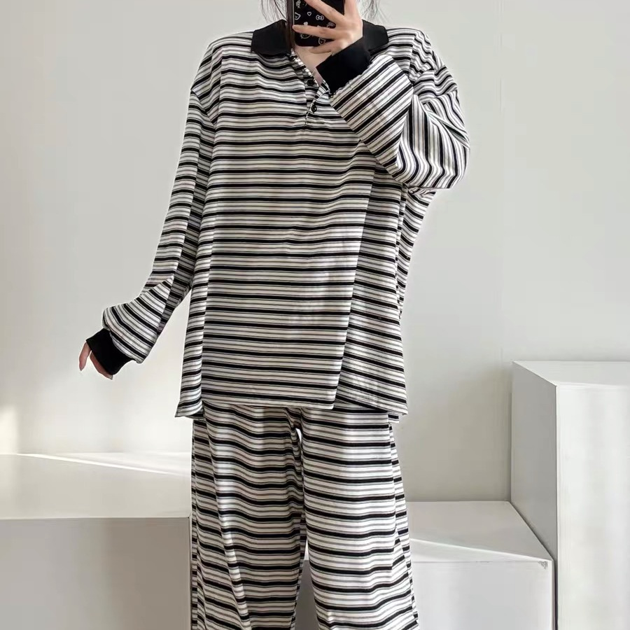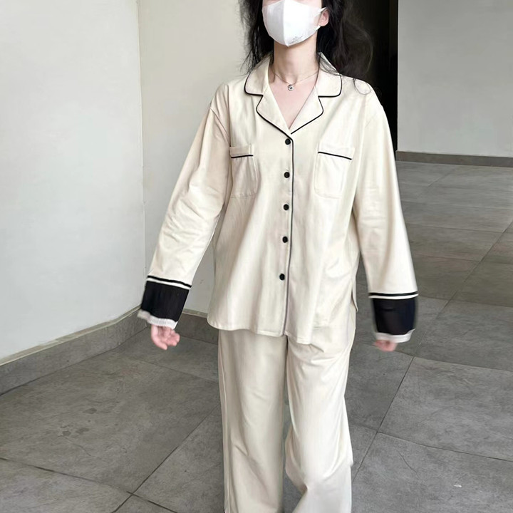 컬러블록 긴팔 잠옷 여성용 가을 겨울 2025년 달콤한 공주풍 인스타그램 인기 게으른 스타일 홈웨어 세트스토어 가기