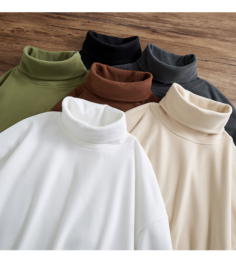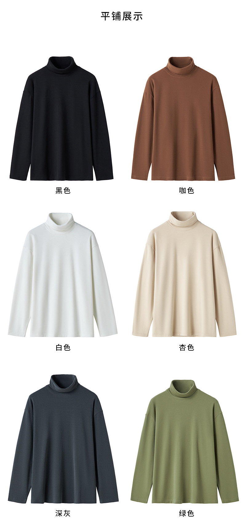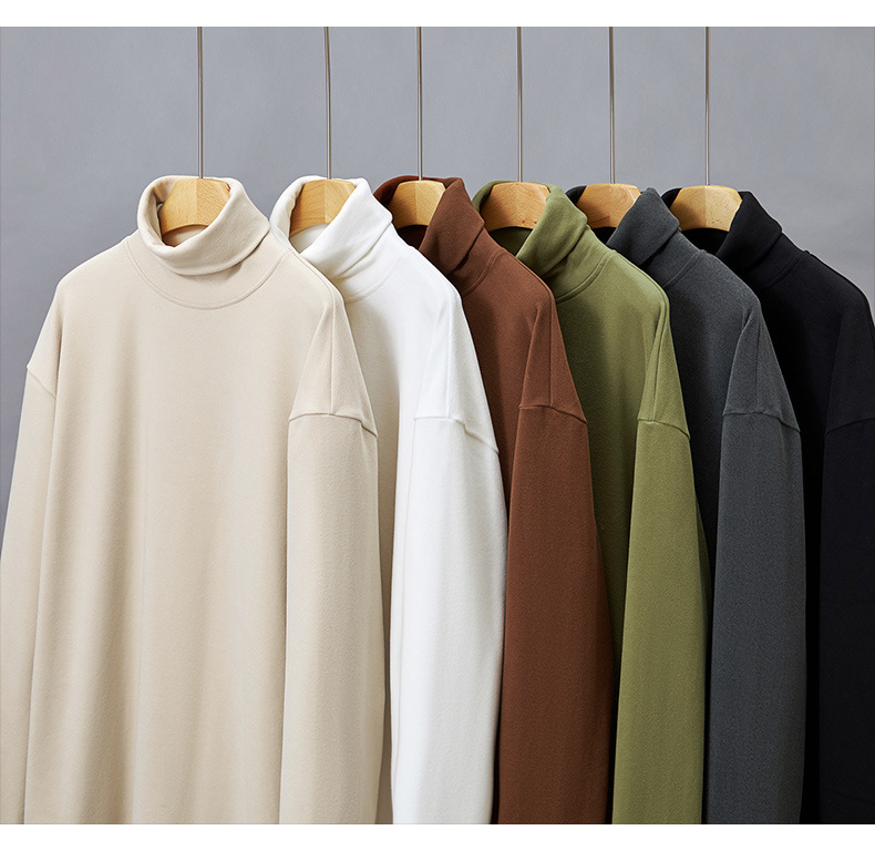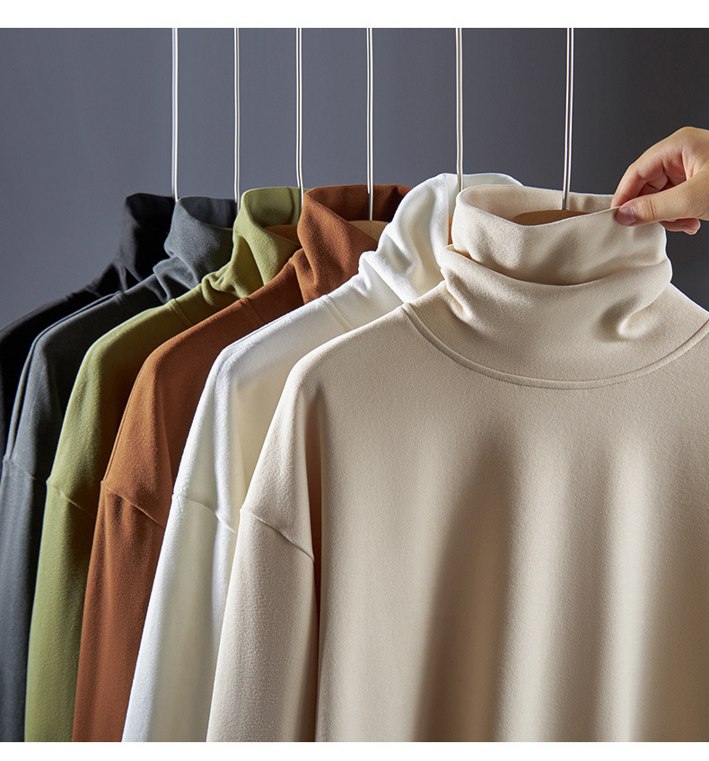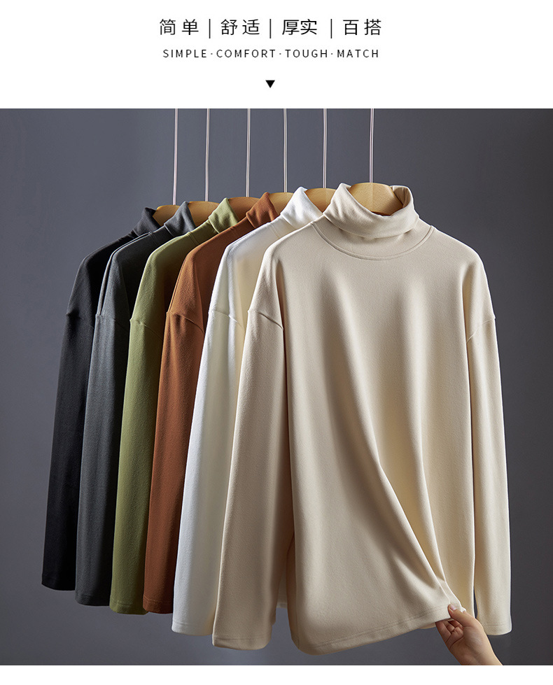 2022 가을과 겨울 새로운 남성용 티셔츠 일본식 심플 두꺼운 따뜻한 벨벳 단색 하이 넥 긴 소매 티셔츠 베이스 셔츠스토어 가기