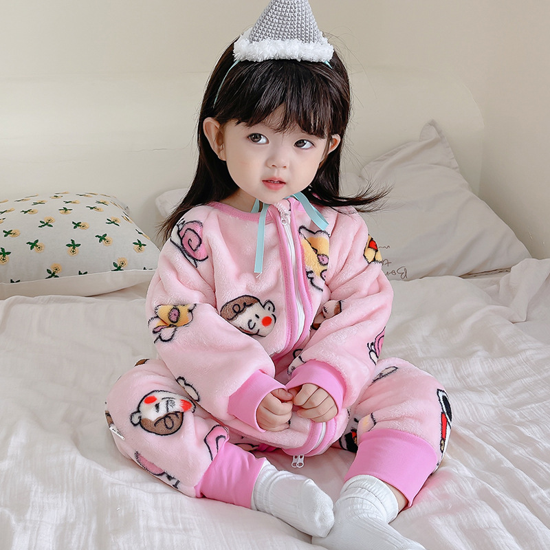 어린이 침낭 가을과 겨울 두꺼운 산호 양털 플란넬 아기 원피스 잠옷 겨울 아기 잠자는 안티 킥 이불