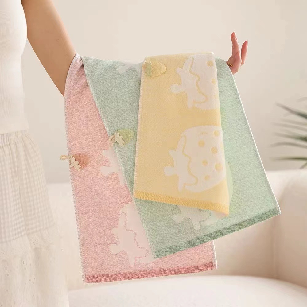 순면 어린이 수건 끈 귀여운 토끼 거즈 루프 도트 어린이 아기 세차 얼굴 작은 수건 부드러운 흡수
