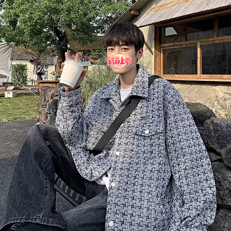 샤넬 스타일 재킷 남자의 봄 새로운 느슨한 유행 브랜드 미국 스타일 재킷 한국 스타일 모든 일치 짠 격자 무늬 탑스토어 가기