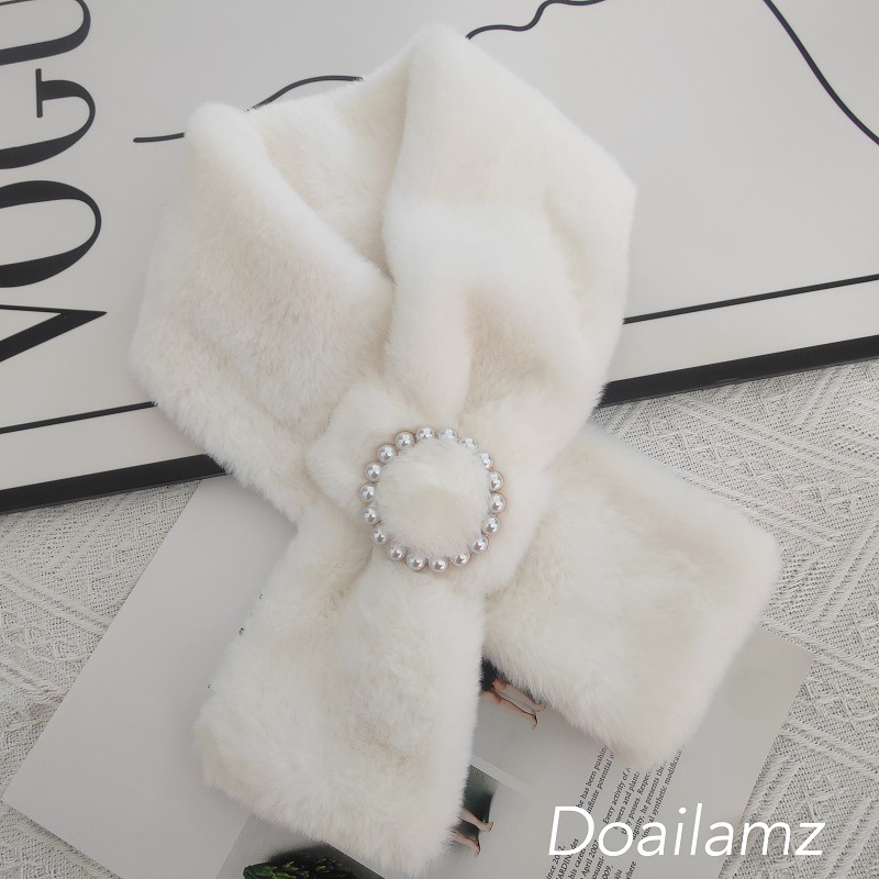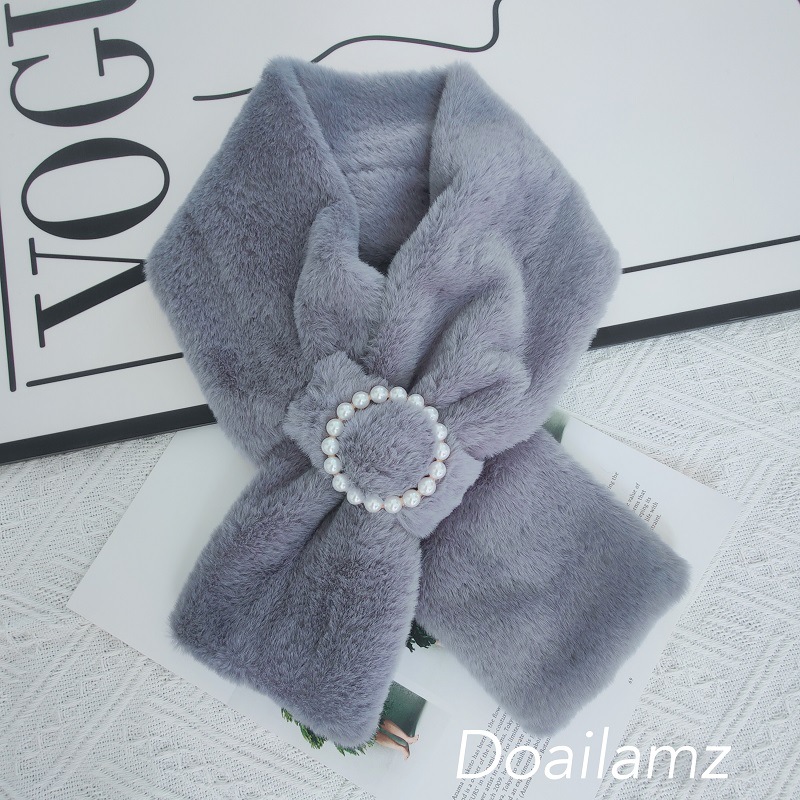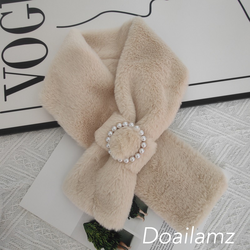 진주 원형 버클 모피 스카프, 모조 토끼털, 한국 스타일, 여성용 두꺼운 달콤한 스카프, 학생용, 다용도, 트렌디, 겨울 보온스토어 가기