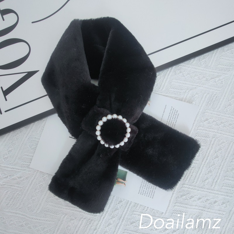 진주 원형 버클 모피 스카프, 모조 토끼털, 한국 스타일, 여성용 두꺼운 달콤한 스카프, 학생용, 다용도, 트렌디, 겨울 보온