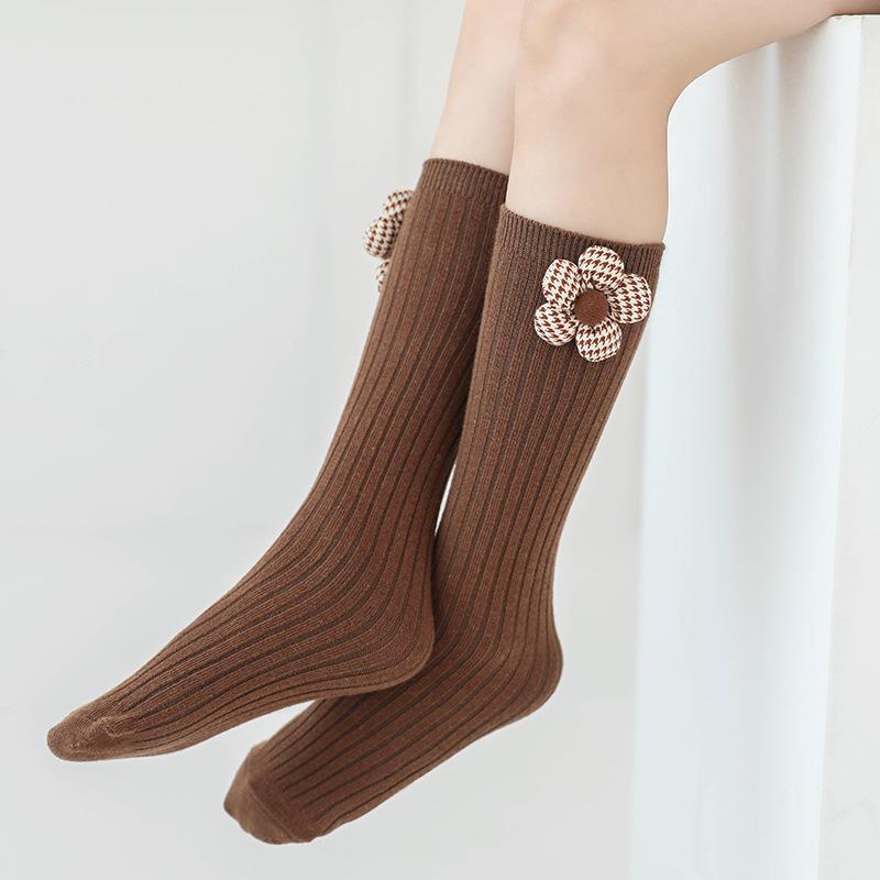 여아 양말 봄과 가을 면 중간 길이 양말 어린이 양말 바둑판 꽃 얇은 여아 가을 스타킹 어린이 양말