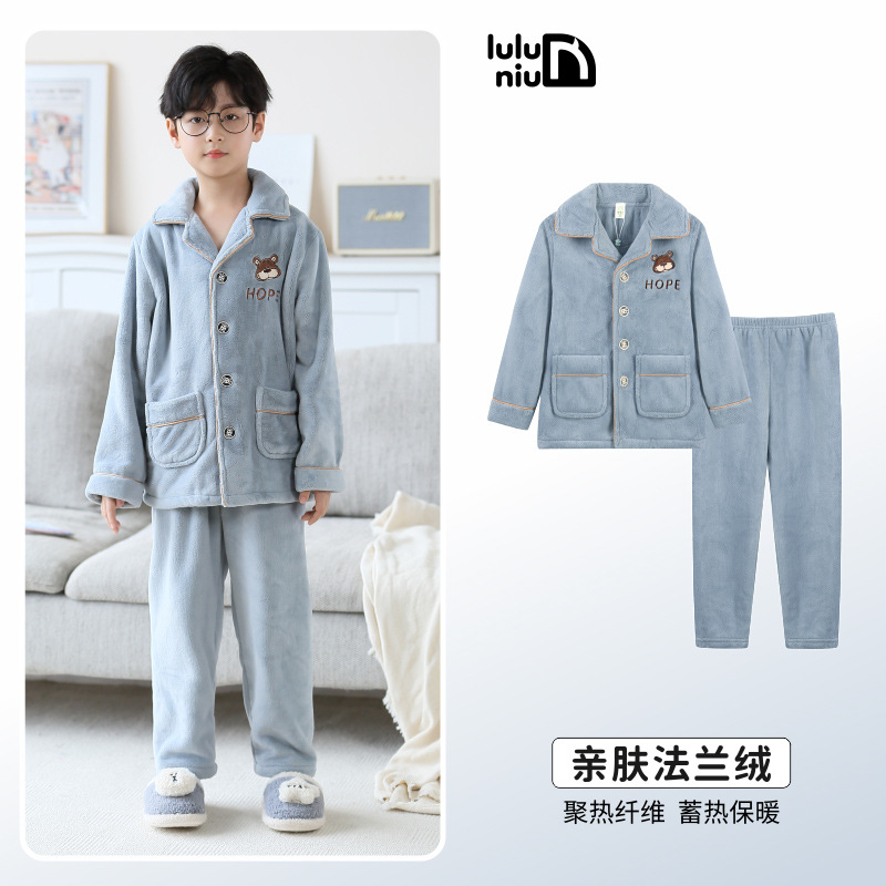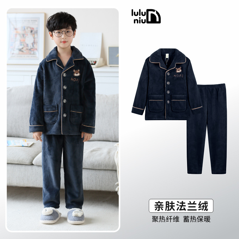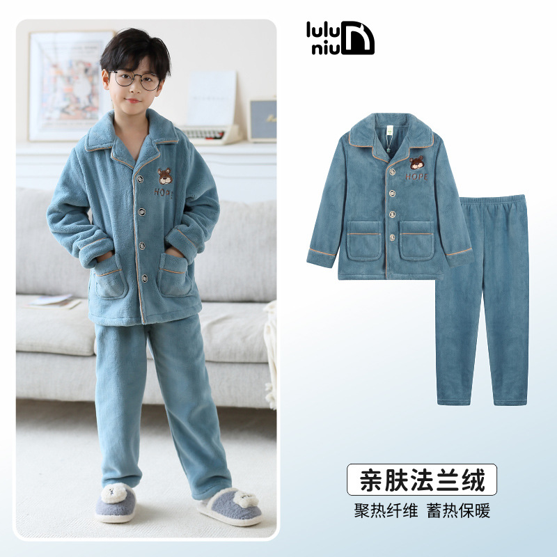 루루 소 어린이 잠옷 소년 가을과 겨울 플란넬 두꺼운 소년 십대 큰 어린이 산호 양털 잠옷