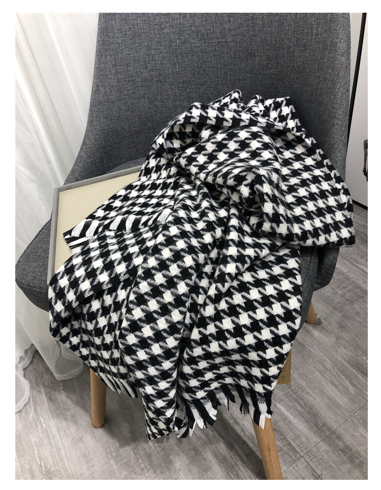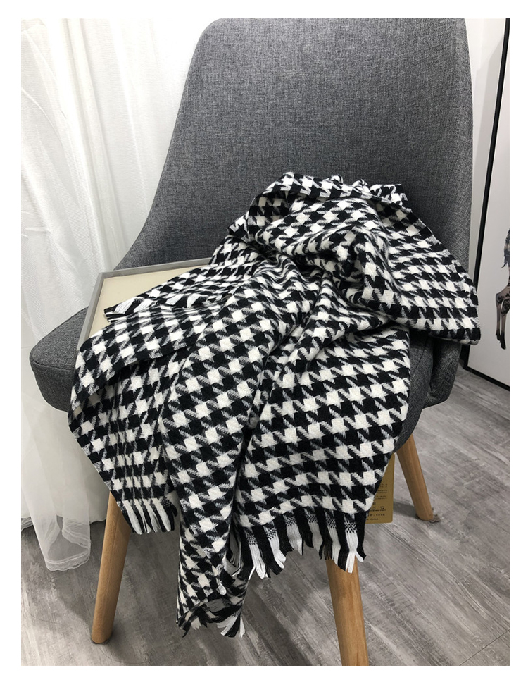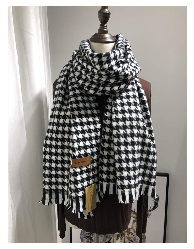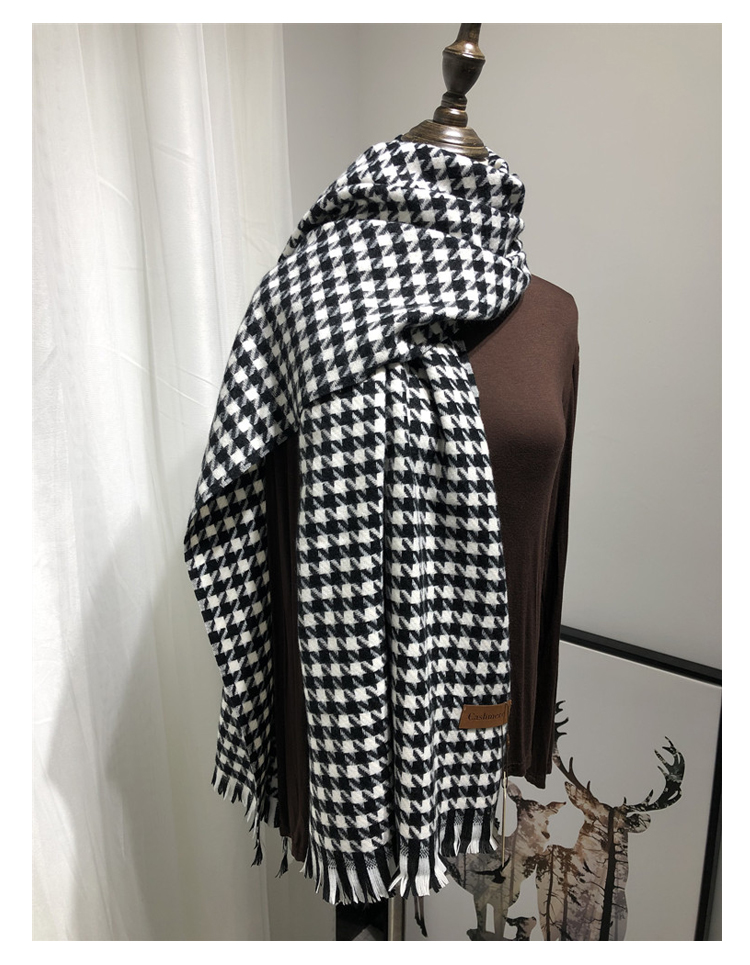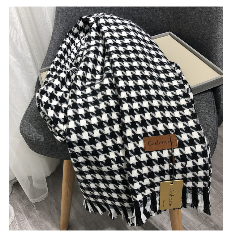 대외 무역 싱글 스타 생 에지 커플 흑백 하운드투스 모조 캐시미어 스카프 겨울 따뜻한 두꺼운 대형 목도리스토어 가기
