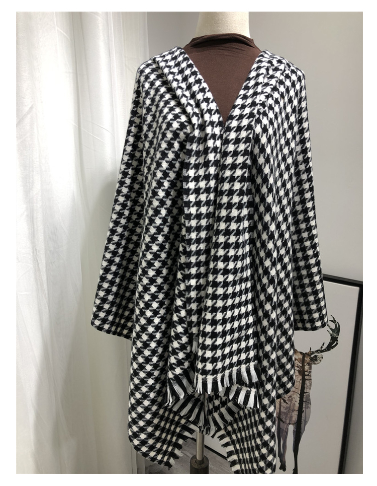 대외 무역 싱글 스타 생 에지 커플 흑백 하운드투스 모조 캐시미어 스카프 겨울 따뜻한 두꺼운 대형 목도리